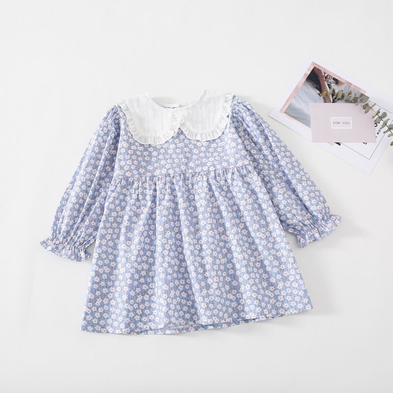 ★送料無料★ 女の子 花柄 襟付き ワンピース 小花 レース 子供 キッズ ベビー ジュニア 秋 冬 韓国