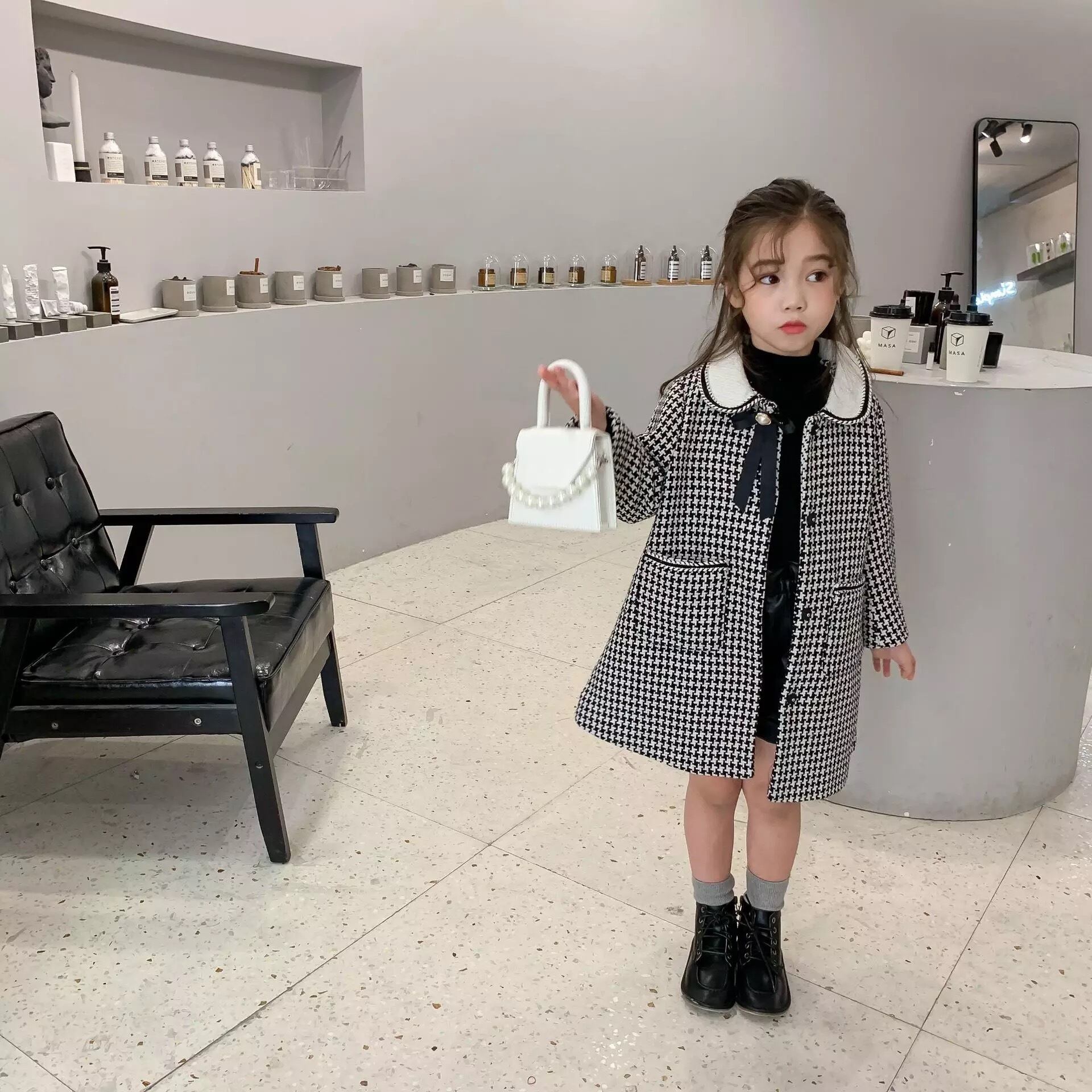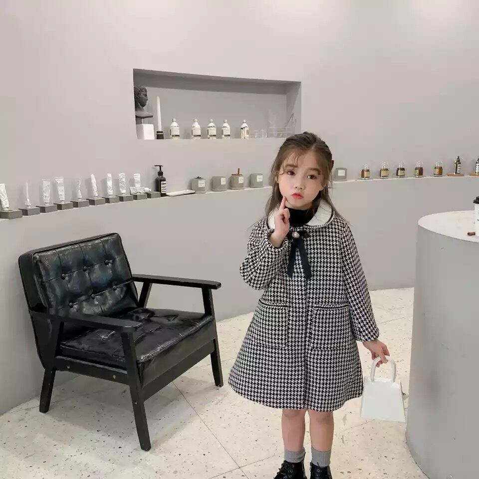 ★送料無料★ 女の子 チェック コート シングル パール風飾り リボン 襟付き 子供 キッズ ベビー ジュニア 秋 冬 韓国