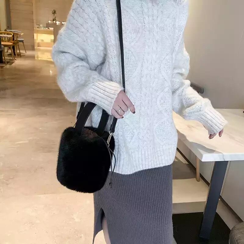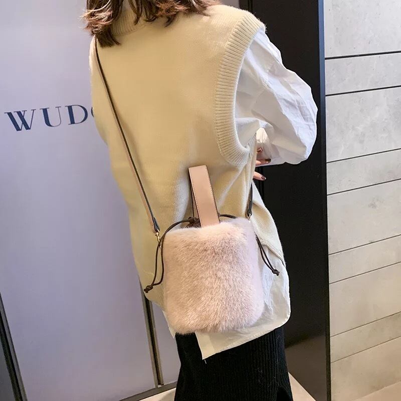 ★送料無料★ 4カラー レディース ファー バケツ型 バッグ ショルダー ハンドバッグ ふわふわ フワフワ 秋 冬