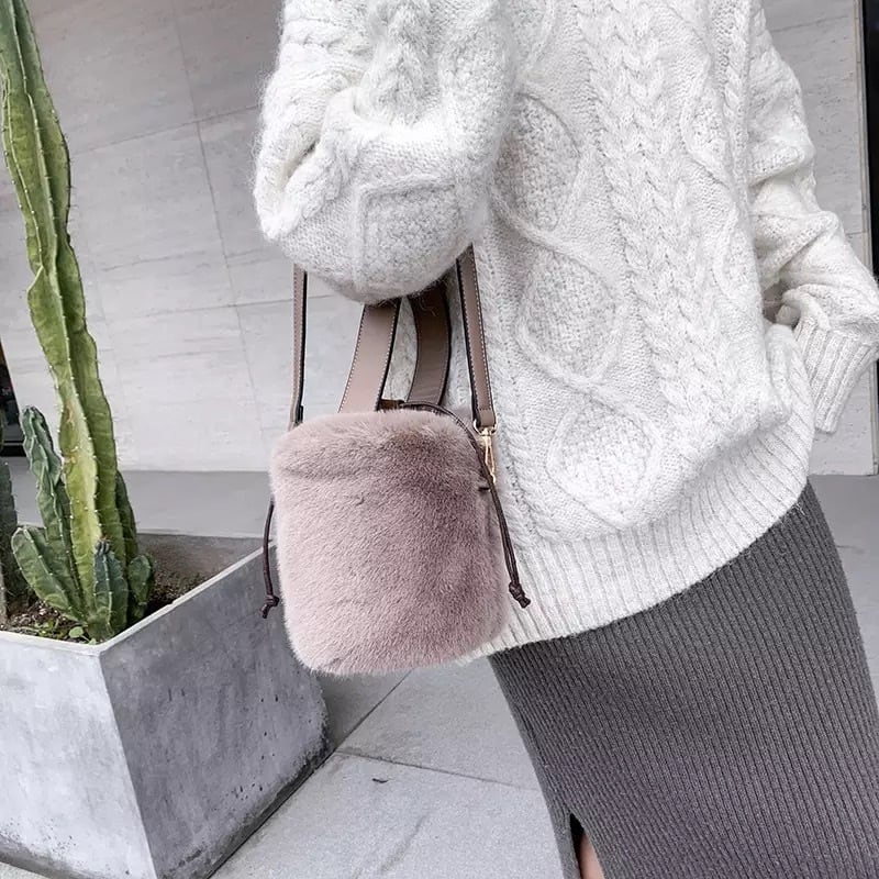 かわいいバケツ型のファーバッグ?