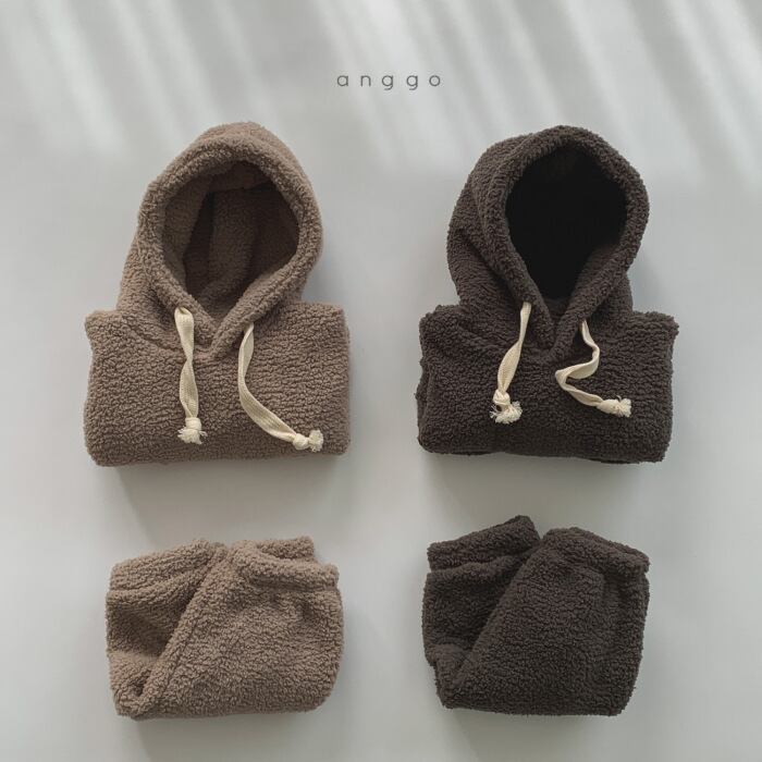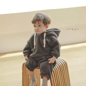 ★送料無料★ 2カラー ベージュ 女の子 男の子 ふわふわ もこもこ セットアップ プルオーバーパーカー パンツ フワフワ モコモコ 子供 キッズ ベビー 赤ちゃん 秋 冬 韓国