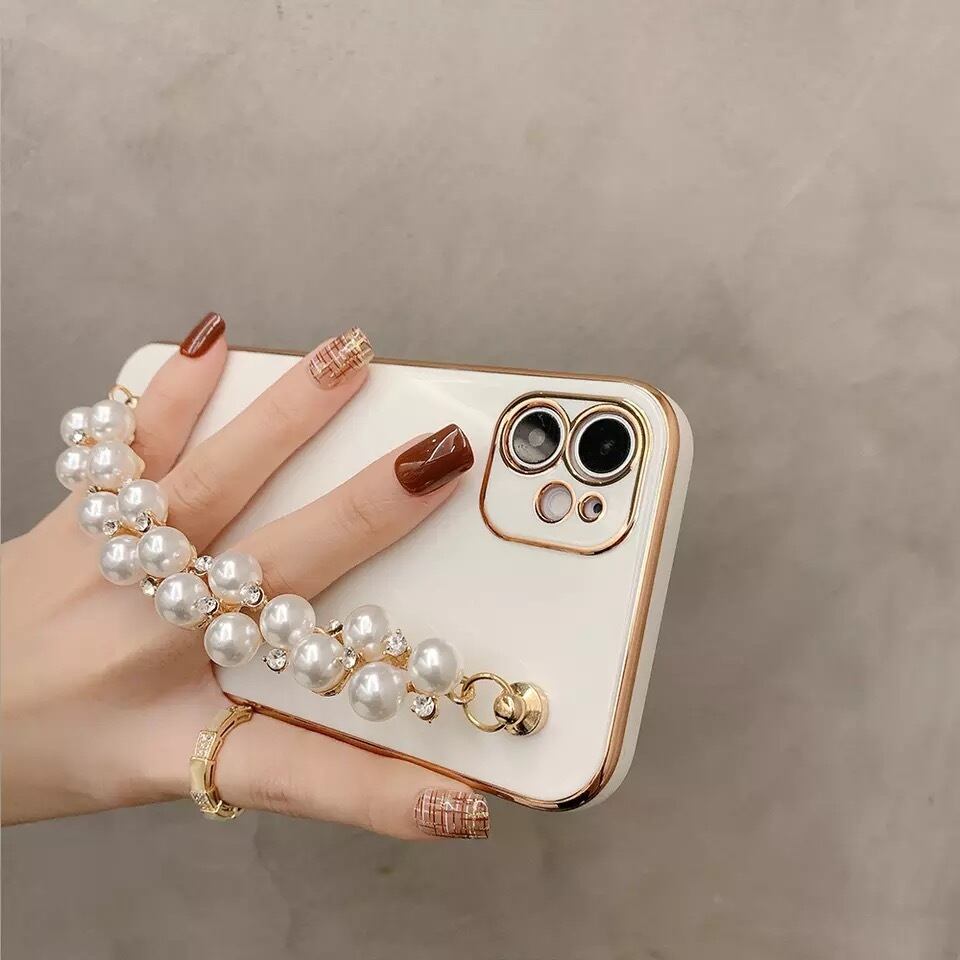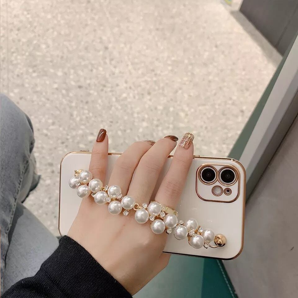 おしゃれなパール調のハンドストラップiPhoneケース?