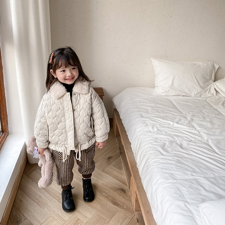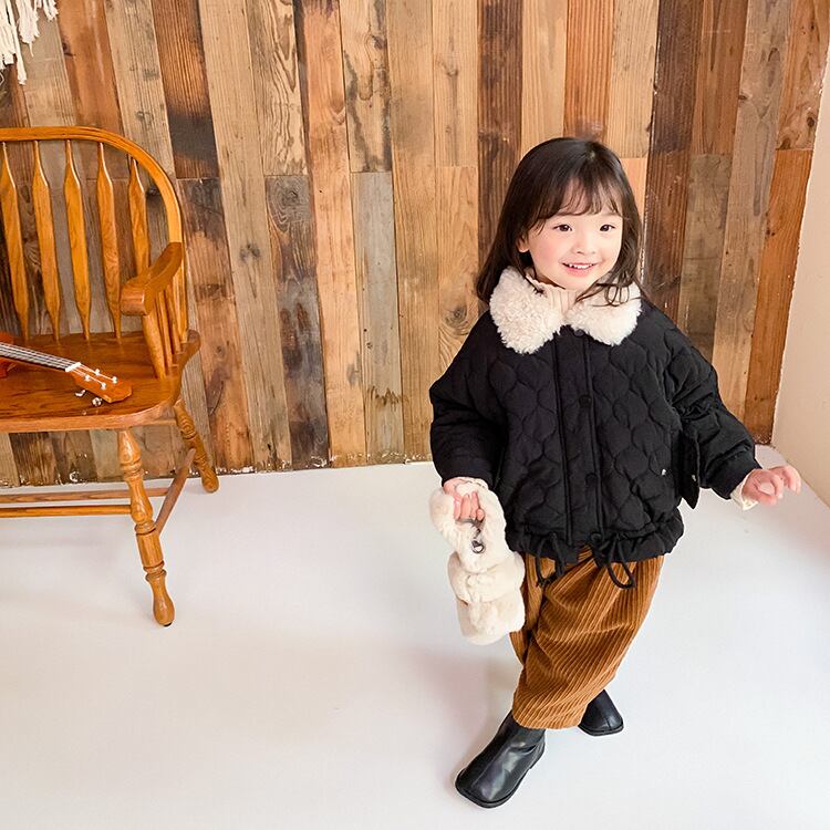 ★送料無料★ 2カラー ブラック 黒 女の子 男の子 ボア キルティング コート シングル 襟付き ファー ジャンパー 子供 キッズ ベビー ジュニア 秋 冬 韓国