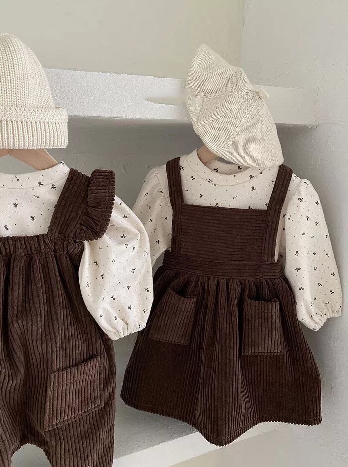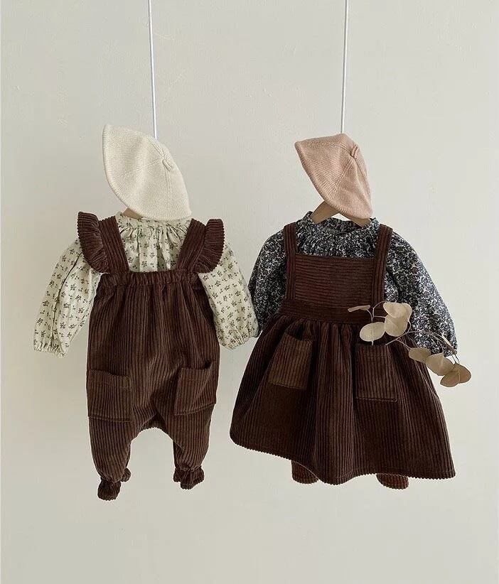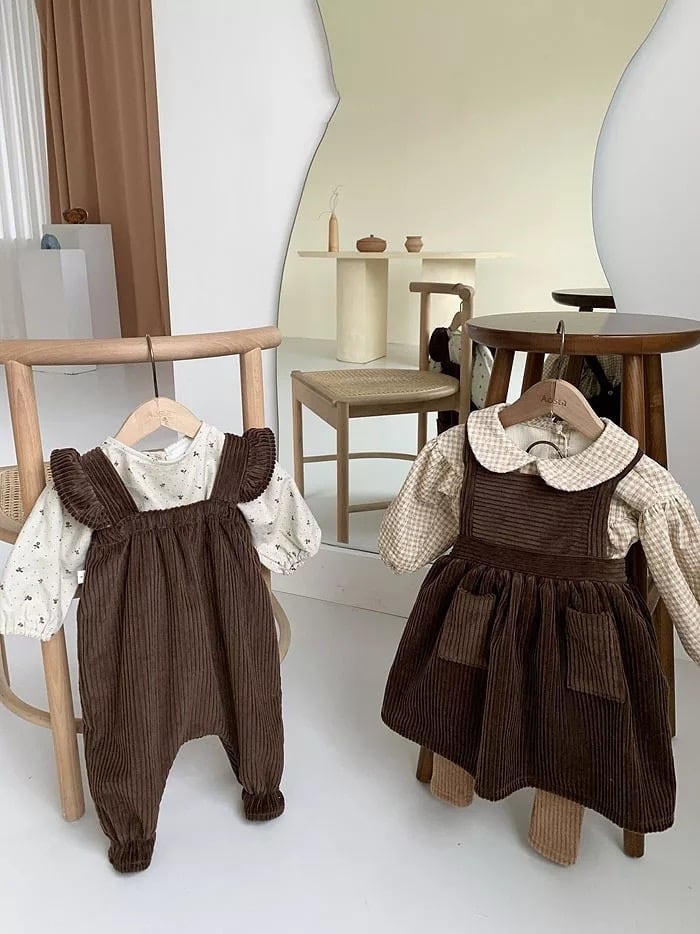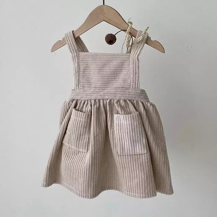 ★送料無料★ 2カラー ベージュ 女の子 コーデュロイ ワンピース 子供 キッズ ベビー ジュニア 秋 冬 韓国