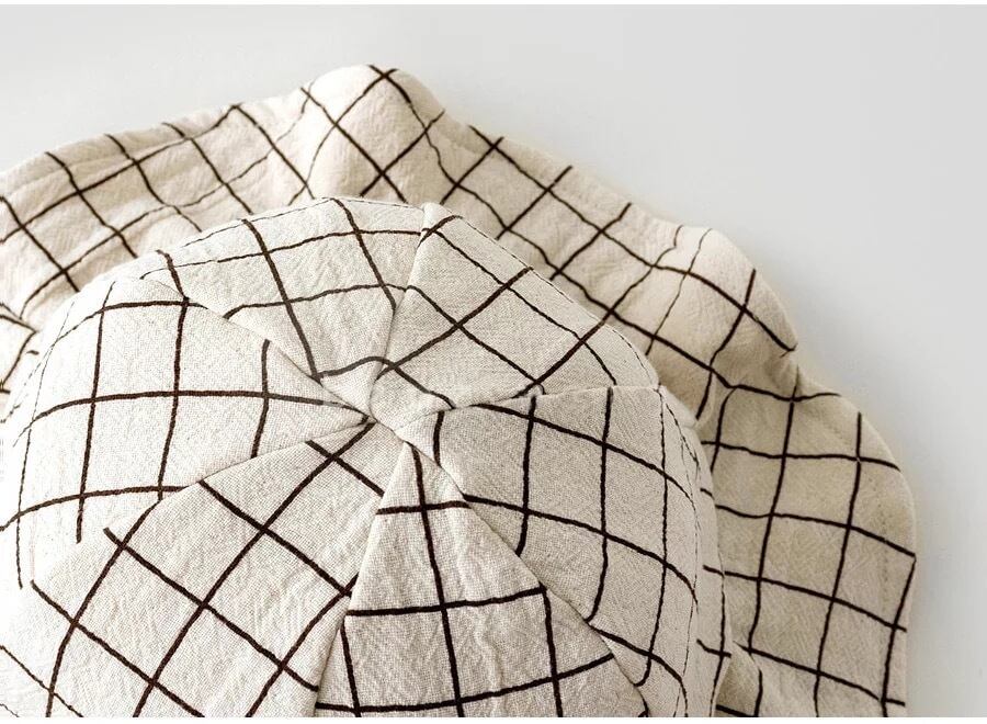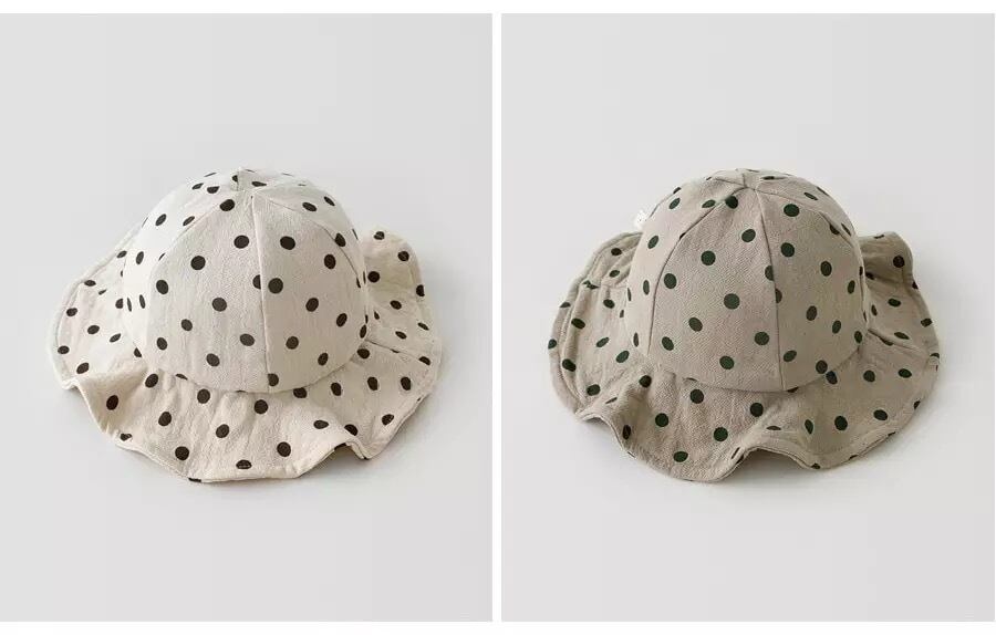 ★送料無料★ 6色 キッズ ツバ付き 帽子 ハット キャップ 水玉 ドット チェック アースカラー くすみカラー 子供 男の子 女の子 ベビー 秋 冬 韓国
