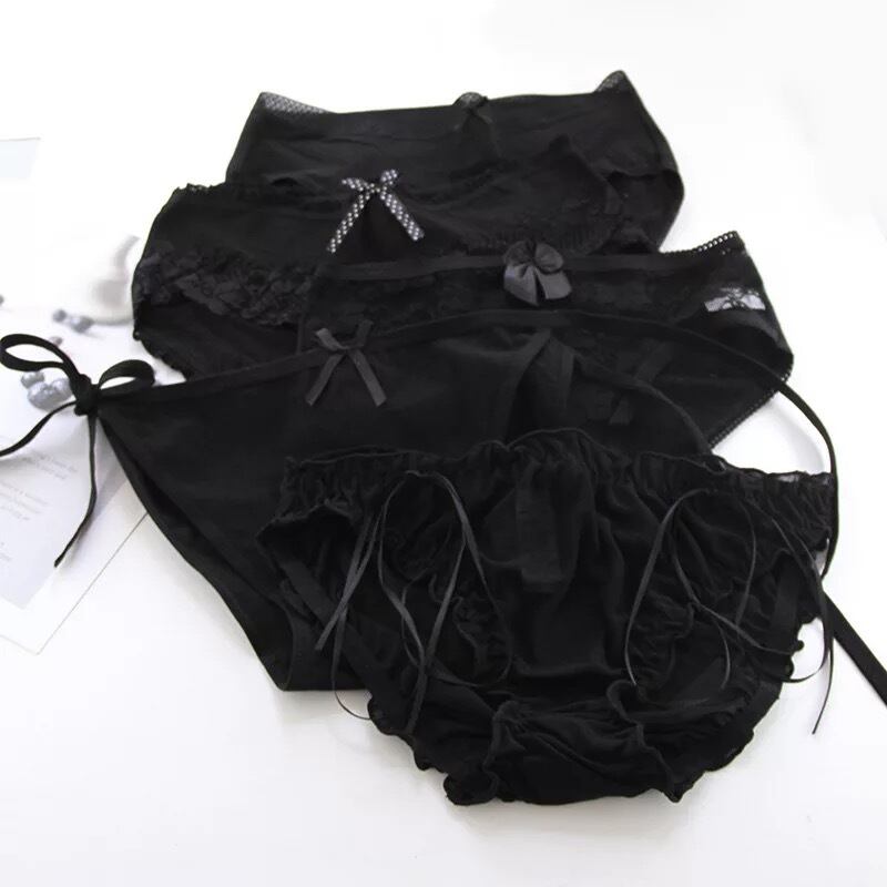 ★送料無料★ 5枚セット ブラックセット 黒 レディース レース リボン ショーツ 下着 ランジェリー パンツ パンティ