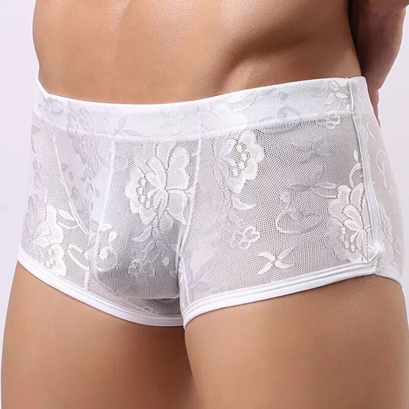 ★送料無料★ 2色 メンズ 男性 花柄 刺繍 レース セクシー 通気性 メッシュ ボクサーパンツ アンダーウェア 下着 パンツ 大きいサイズ