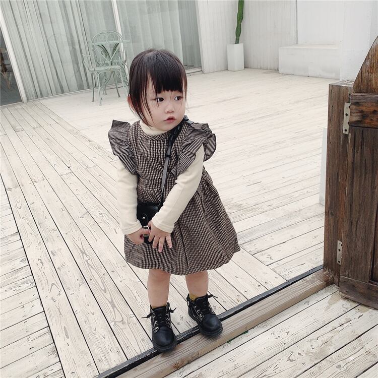 ★送料無料★ 2カラー 女の子 チェック 格子柄 ワンピース フリル 子供 キッズ ベビー ジュニア 秋 冬 春 夏 韓国