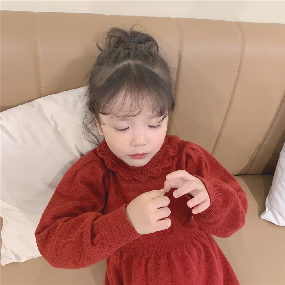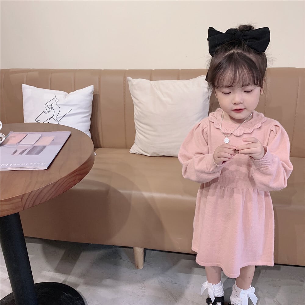 ★送料無料★ 3カラー 女の子 ニット ワンピース 襟付き 子供 キッズ ベビー ジュニア 秋 冬 韓国