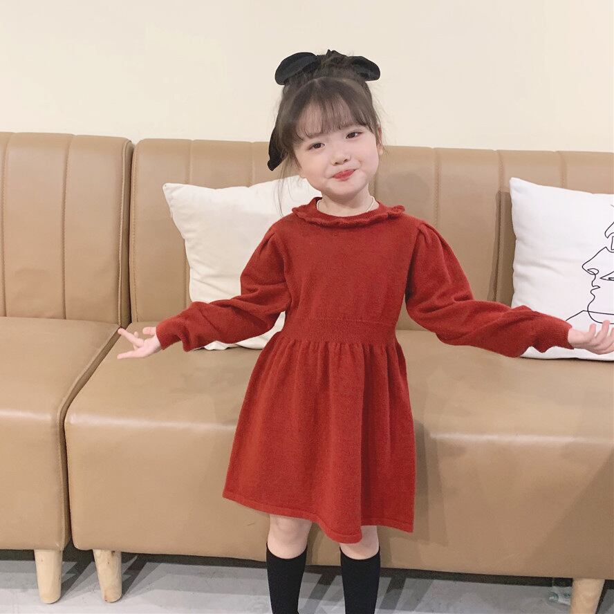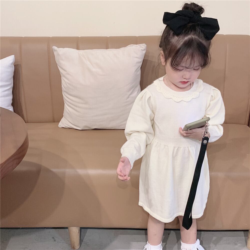 ★送料無料★ 3カラー 女の子 ニット ワンピース 襟付き 子供 キッズ ベビー ジュニア 秋 冬 韓国