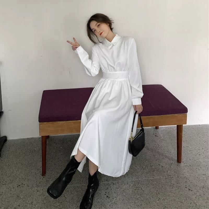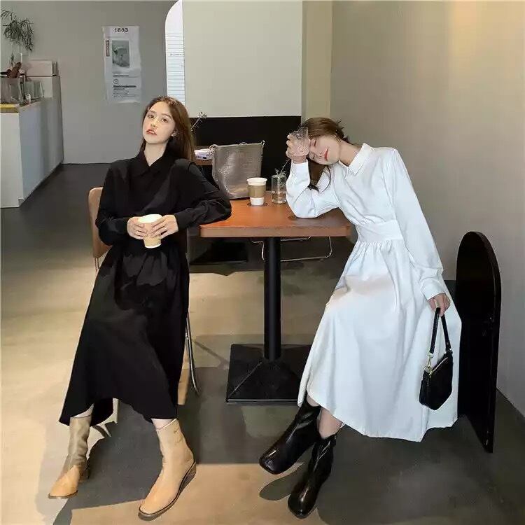 ★送料無料★ 2カラー ホワイト 白 レディース モノトーン ワンピース 襟付き オフィスカジュアル 春 夏 韓国