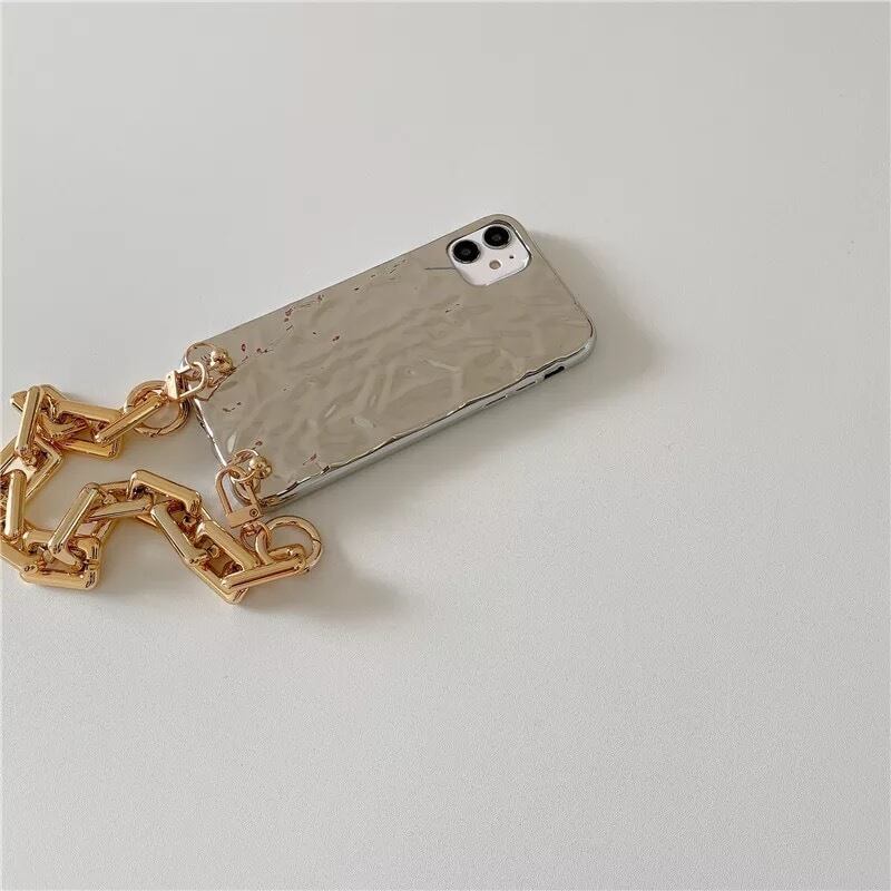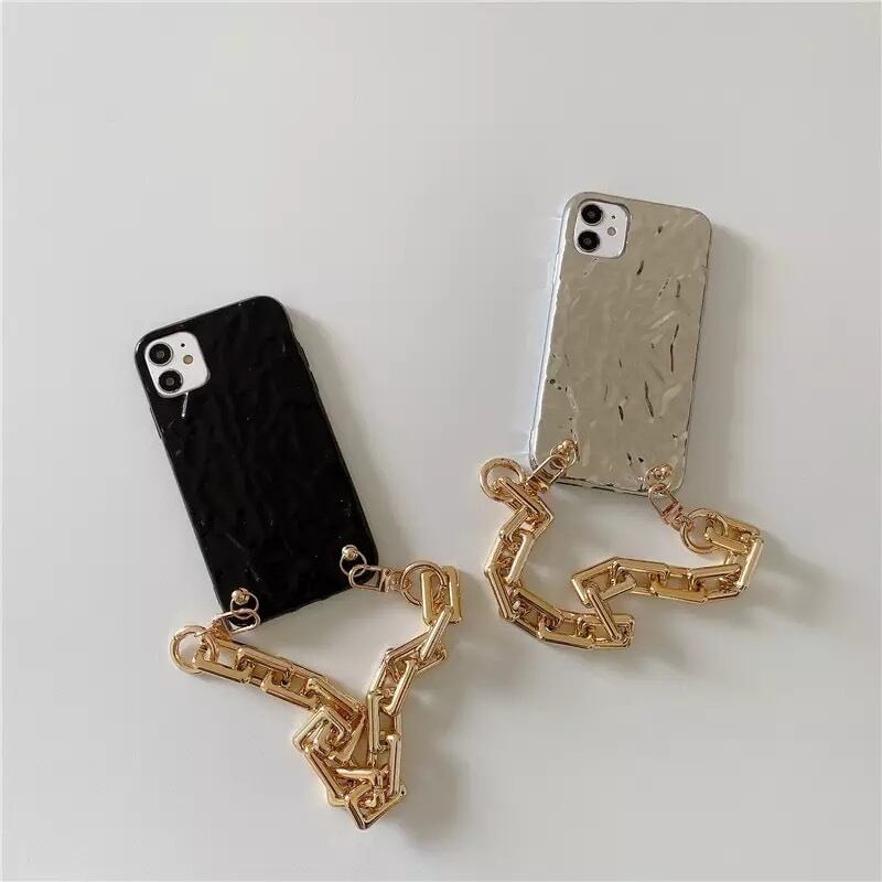 ★送料無料★ 2カラー シルバー 銀 iPhone12対応 チェーン ストラップ エンボス iphoneケース アイフォンケース スマホケース 韓国