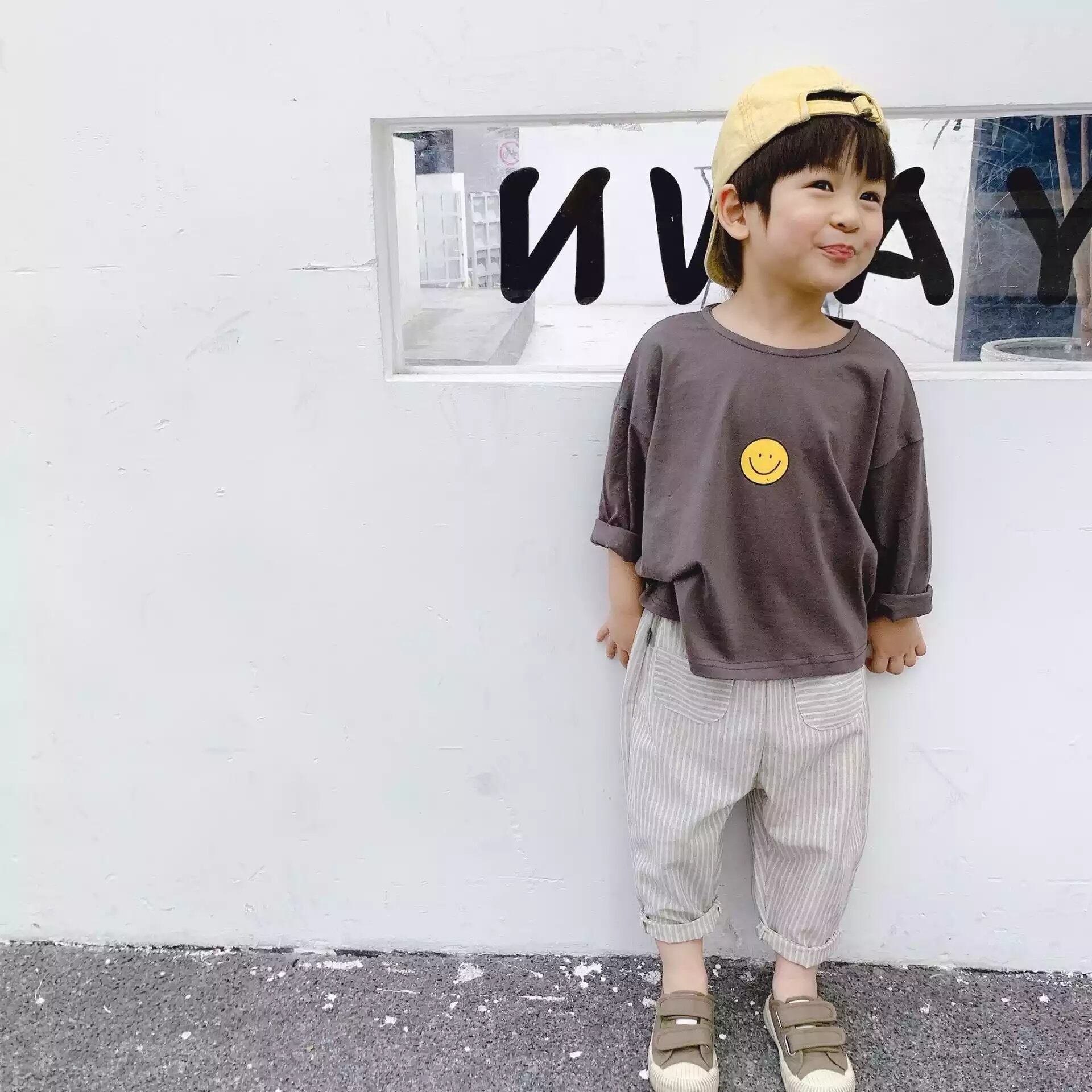 ★送料無料★ 2カラー グレー 男の子 女の子 ストライプ パンツ ズボン イージーパンツ ポケット キッズ 子供 ジュニア 春 夏 韓国