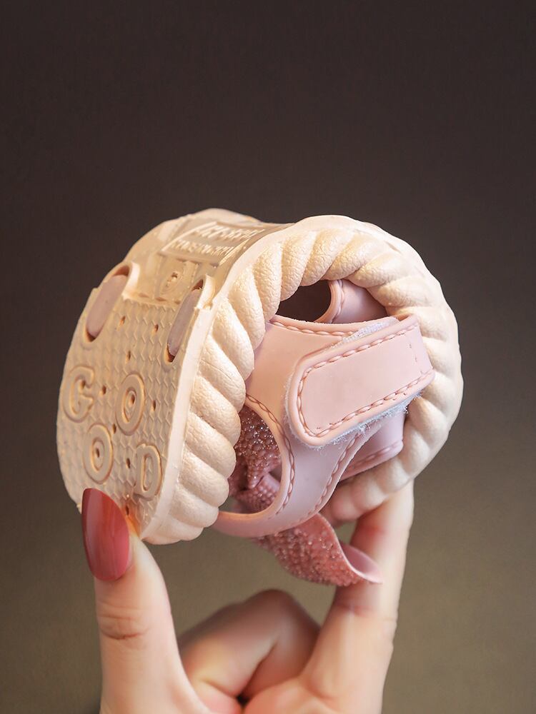 ★送料無料★ 3色 カーキ キラキラ リボン サンダル 靴 シューズ フラット PVC PUレザー 子供 ベビー キッズ 春 夏