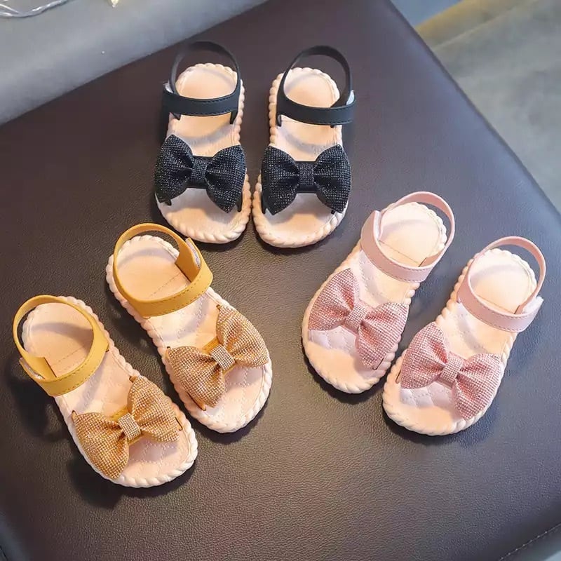 ★送料無料★ 3色 ピンク キラキラ リボン サンダル 靴 シューズ フラット PVC PUレザー 子供 ベビー キッズ 春 夏