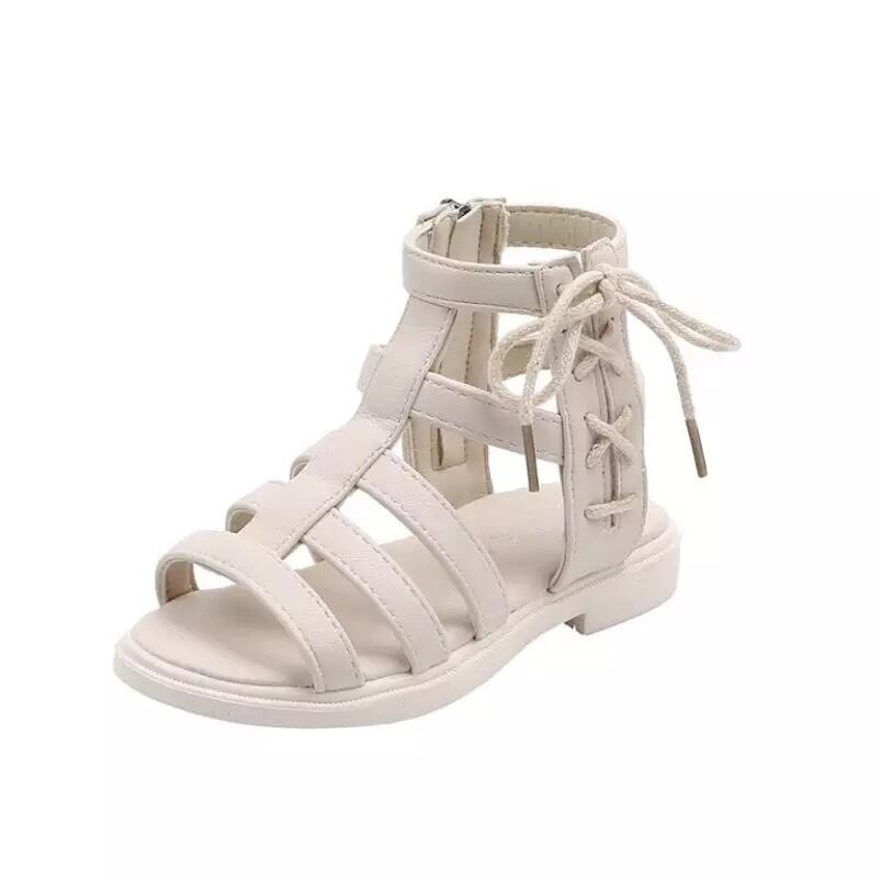 ★送料無料★ 3色 編み上げ サンダル 靴 シューズ フラット ハイカット PUレザー 編み込み 子供 ベビー キッズ 春 夏 韓国