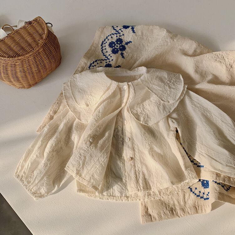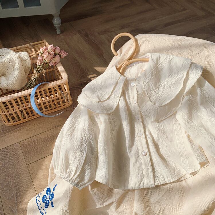 ★送料無料★ 女の子 2重襟 襟付き ブラウス シャツ 花柄 ナチュラル キッズ ベビー 韓国 子供 春 夏