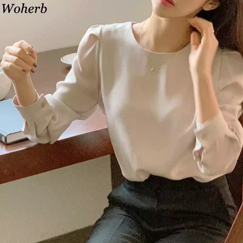 ★送料無料★ レディース パフスリーブ カットソー シンプル Tシャツ ブラウス 春 夏 韓国