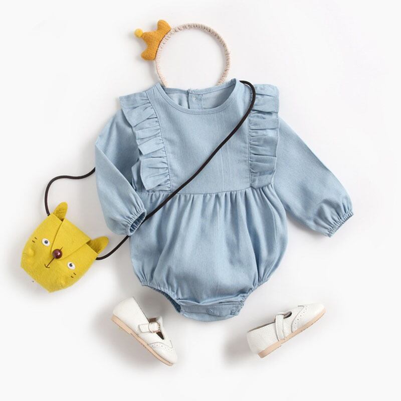 ★送料無料★ 女の子 フリル ロンパース 長袖 シンプル 赤ちゃん ベビー キッズ 子供 春 夏 韓国 ナチュラル