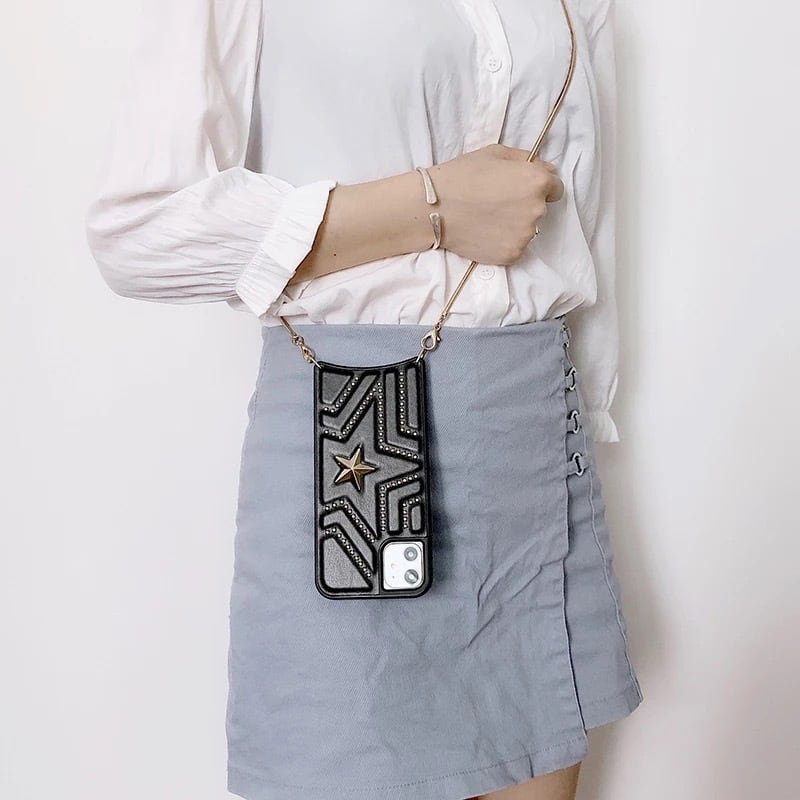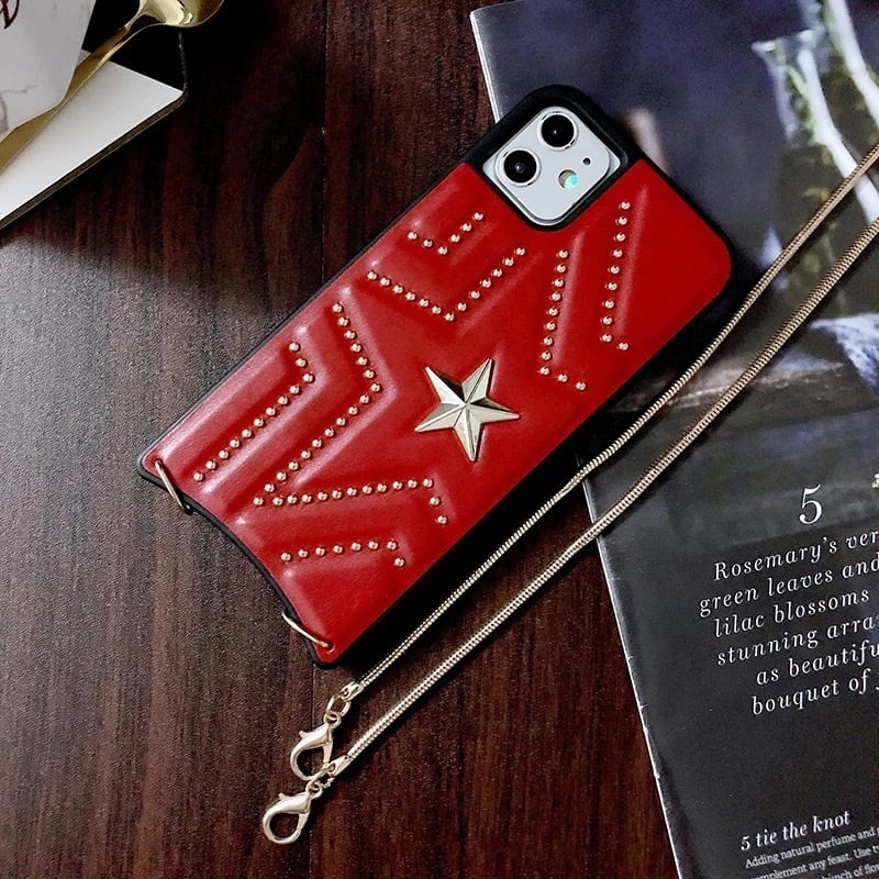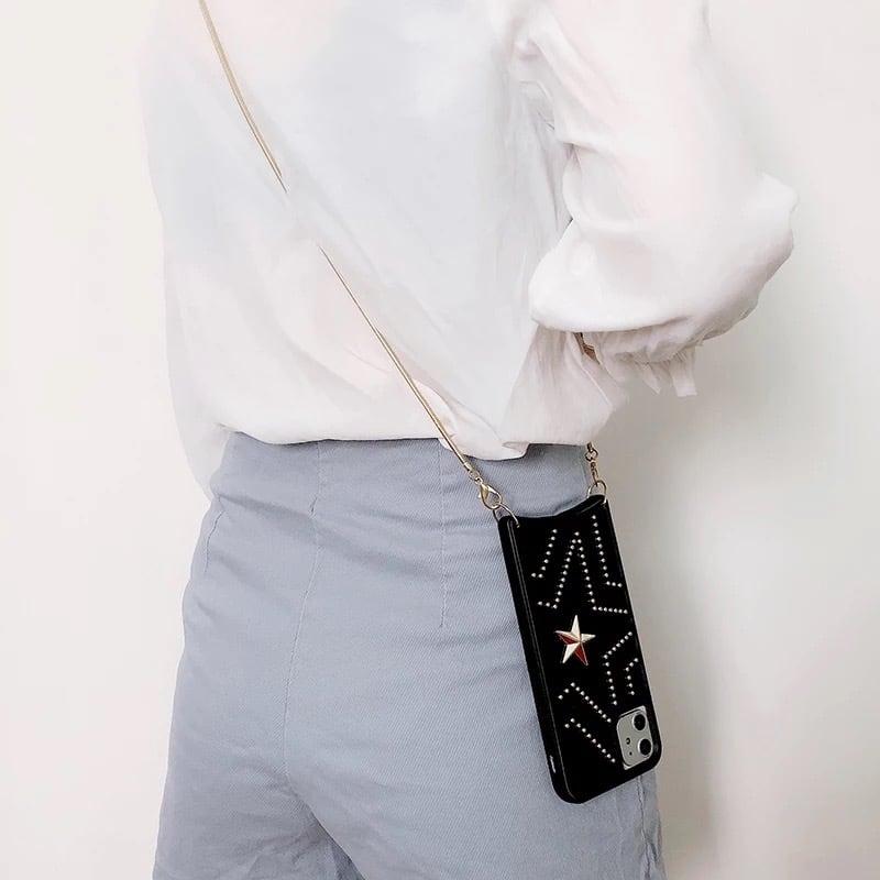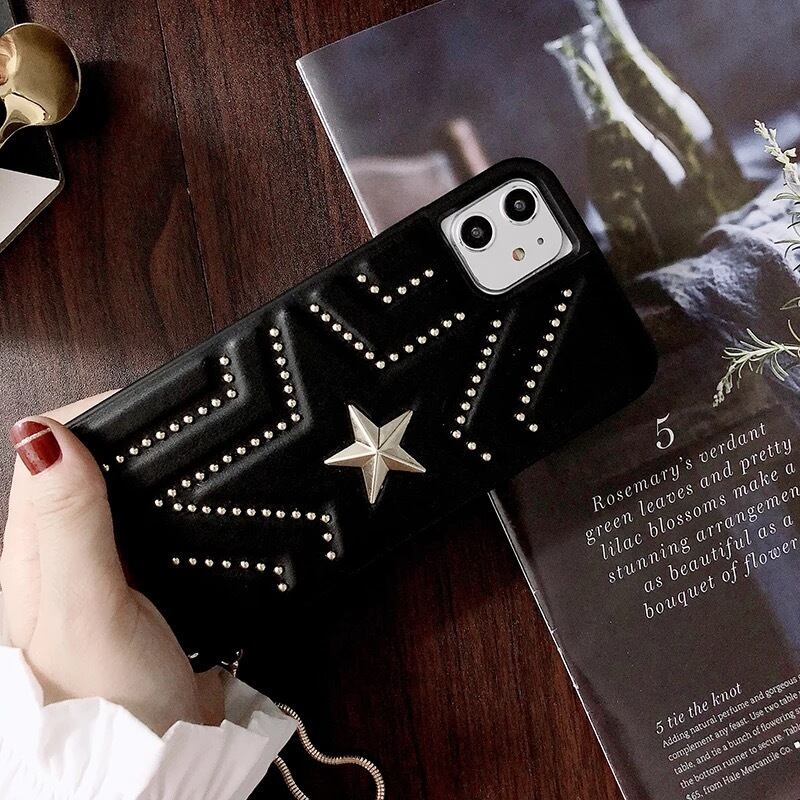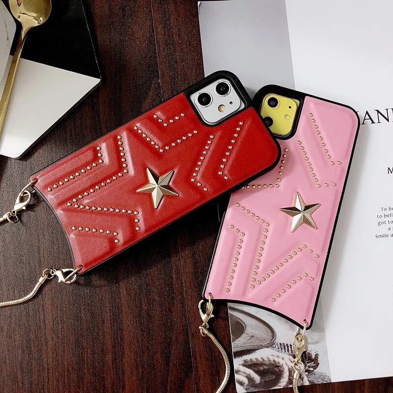 ★送料無料★ 4カラー ブラック 黒 スタッズ ショルダーストラップ スター 星 iphoneケース アイフォンケース スマホケース