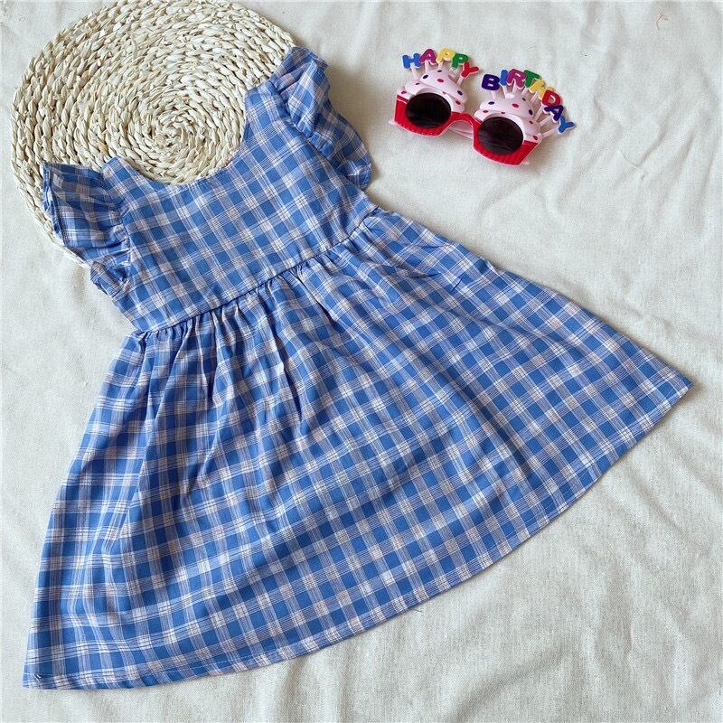 ★送料無料★ 女の子 チェック バックオープン ワンピース 背中開き 子供 キッズ ベビー ジュニア 春 夏 韓国 バッグオープン