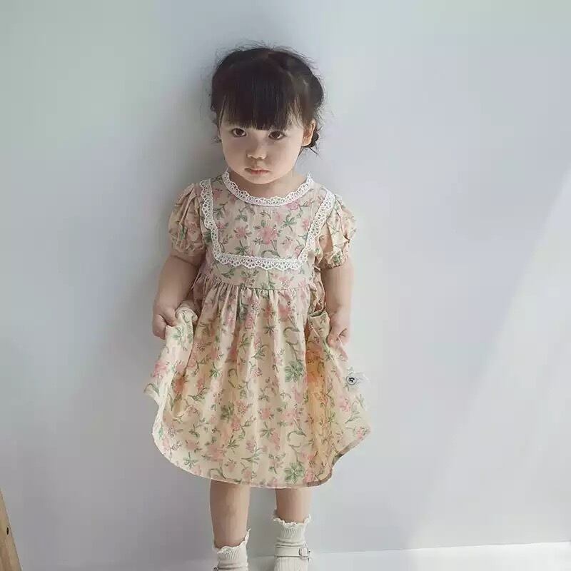 ★送料無料★ 2カラー 女の子 レース 花柄 ワンピース ウエストマーク リボン 子供 キッズ ベビー ジュニア 春 夏 韓国 ナチュラル