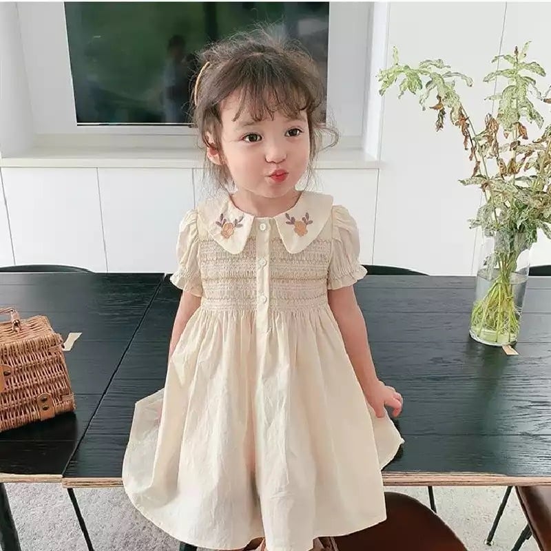 ★送料無料★ 女の子 レース 花柄 刺繍 ワンピース 襟付き 襟刺繍 子供 キッズ ベビー ジュニア 春 夏 韓国 ナチュラル