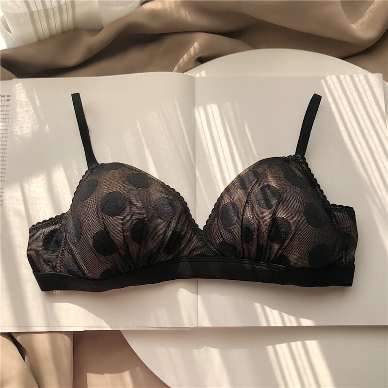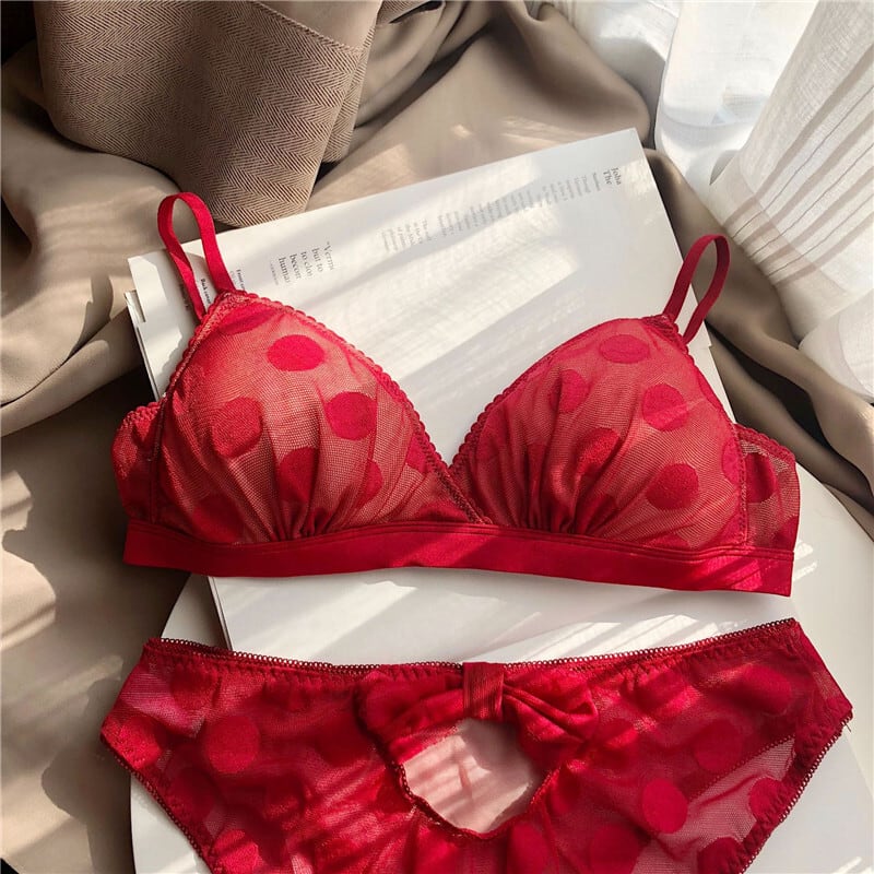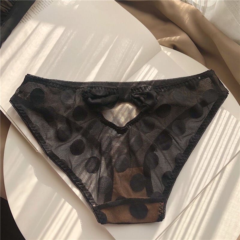 ★送料無料★ 4カラー レディース ドット 水玉 ランジェリー パンツ ブラジャー セット ショーツ 女性用 下着 シアー メッシュ 透け感
