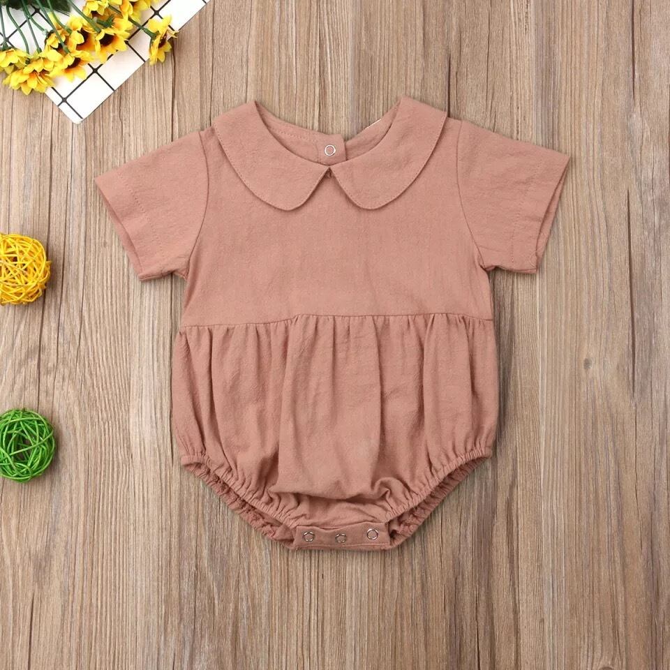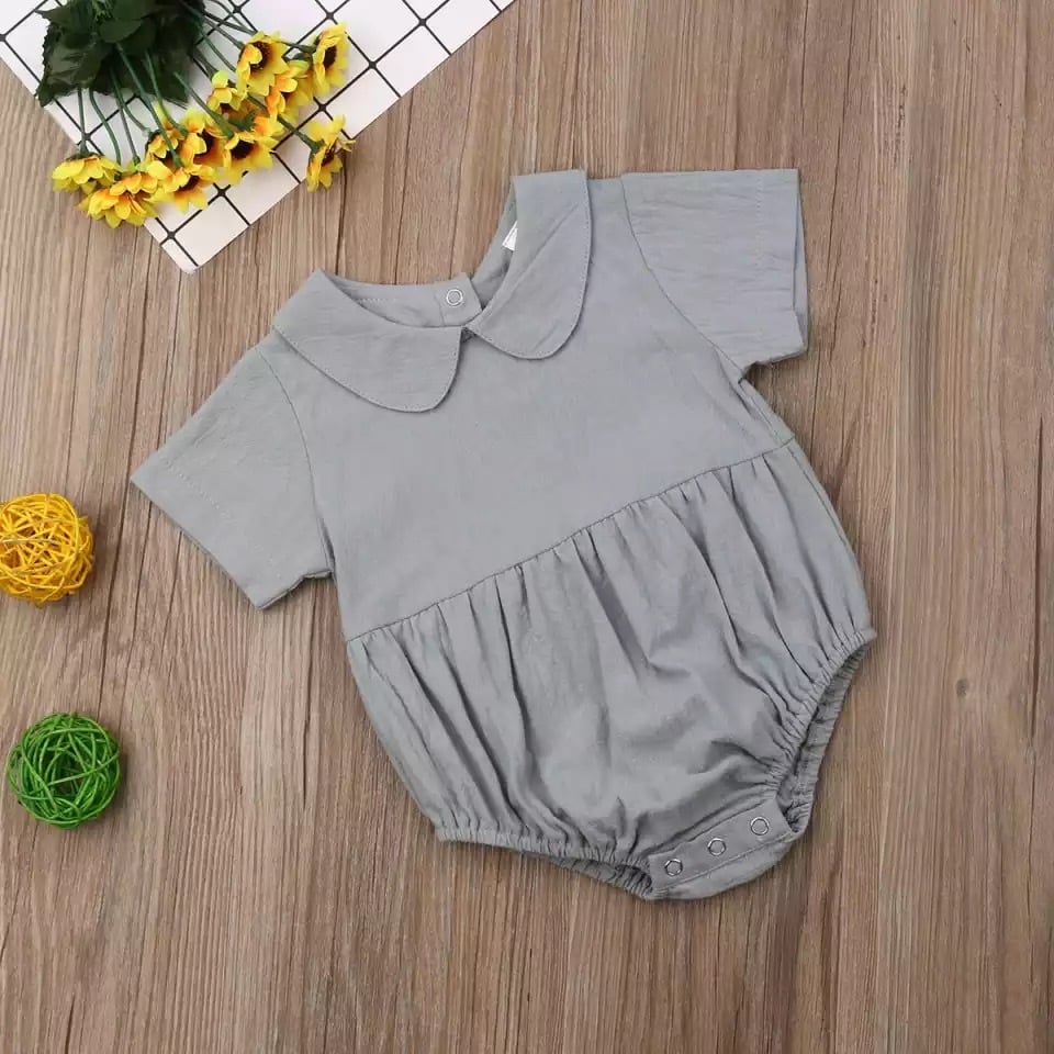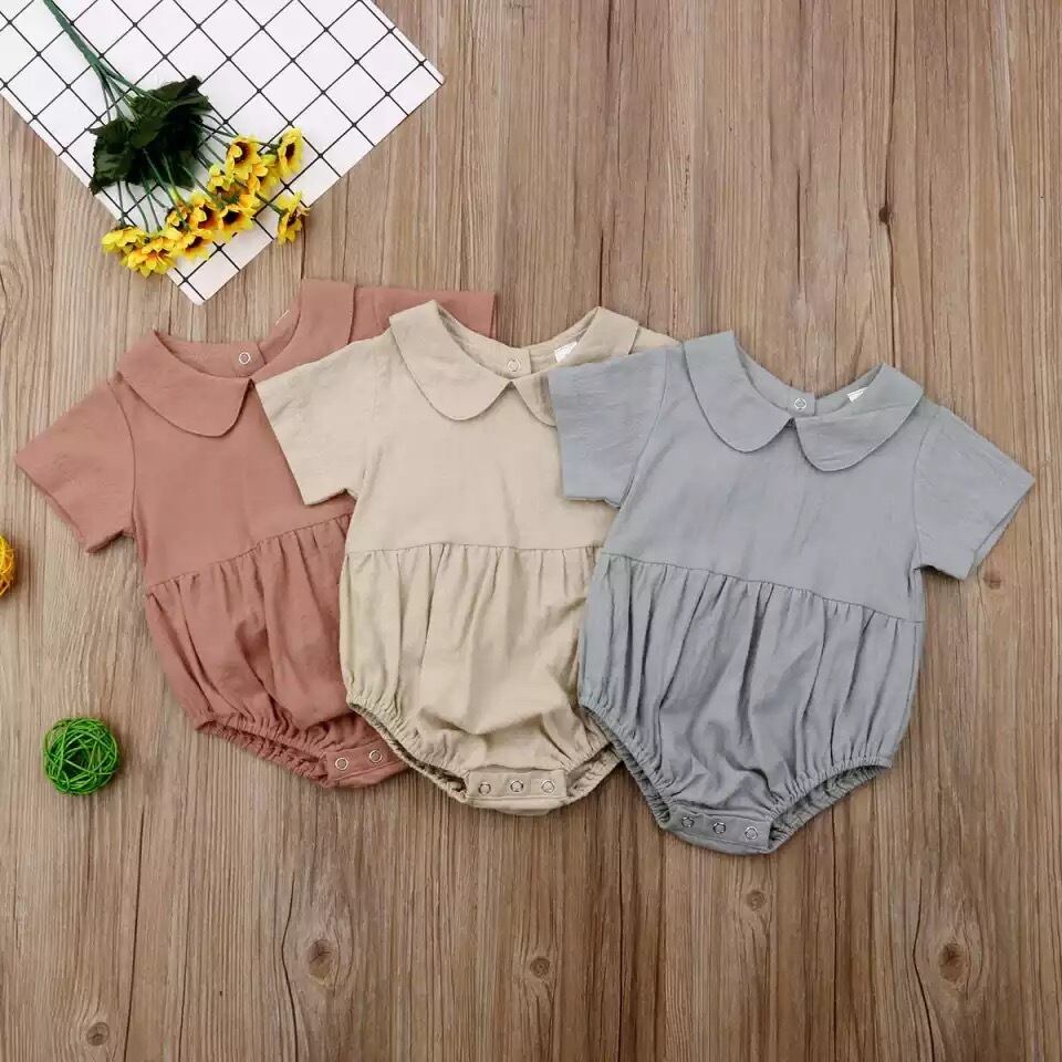 ★送料無料★ 3カラー くすみブルー 女の子 襟付き ロンパース 半袖 シンプル 赤ちゃん ベビー キッズ 子供 春 夏 韓国 ナチュラル くすみカラー