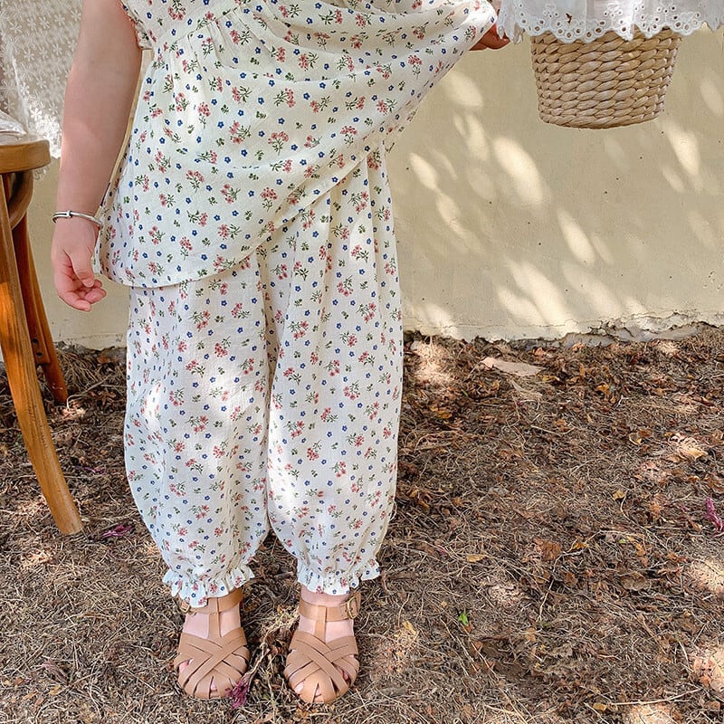 ★送料無料★ 女の子 花柄 フローラル セットアップ 背中開き ブラウス パンツ セット 子供 キッズ 赤ちゃん ベビー 春 夏 ナチュラル 韓国 バッグオープン バックオープン