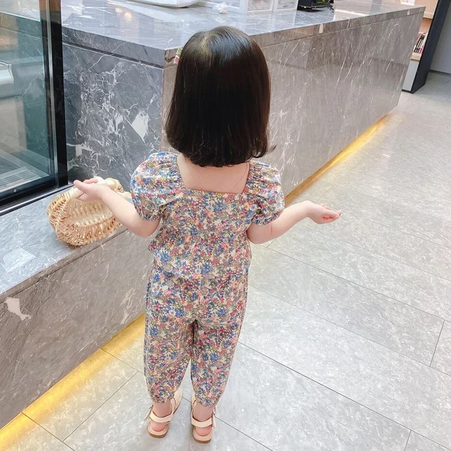 ★送料無料★ 女の子 花柄 フローラル セットアップ 背中開き ブラウス パンツ セット 子供 キッズ 赤ちゃん ベビー 春 夏 ナチュラル 韓国 バッグオープン バックオープン