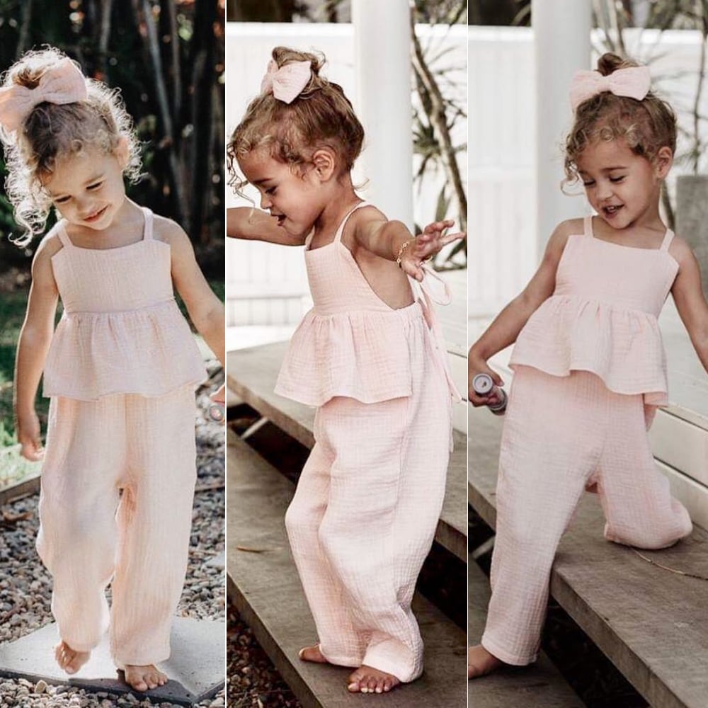 ★送料無料★ 女の子 オールインワン サロペット つなぎ 背中開き 子供 キッズ 赤ちゃん ベビー 春 夏 ナチュラル 韓国 バッグオープン バックオープン ガーゼ素材