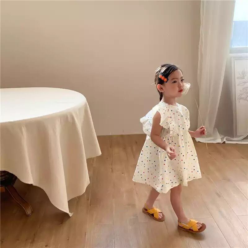 ★送料無料★ 女の子 フリル カラフルドット カラフル 水玉 ワンピース 子供 キッズ 赤ちゃん ベビー 春 夏 ナチュラル 韓国