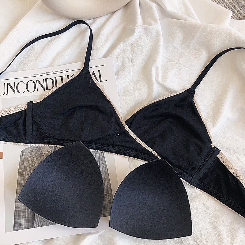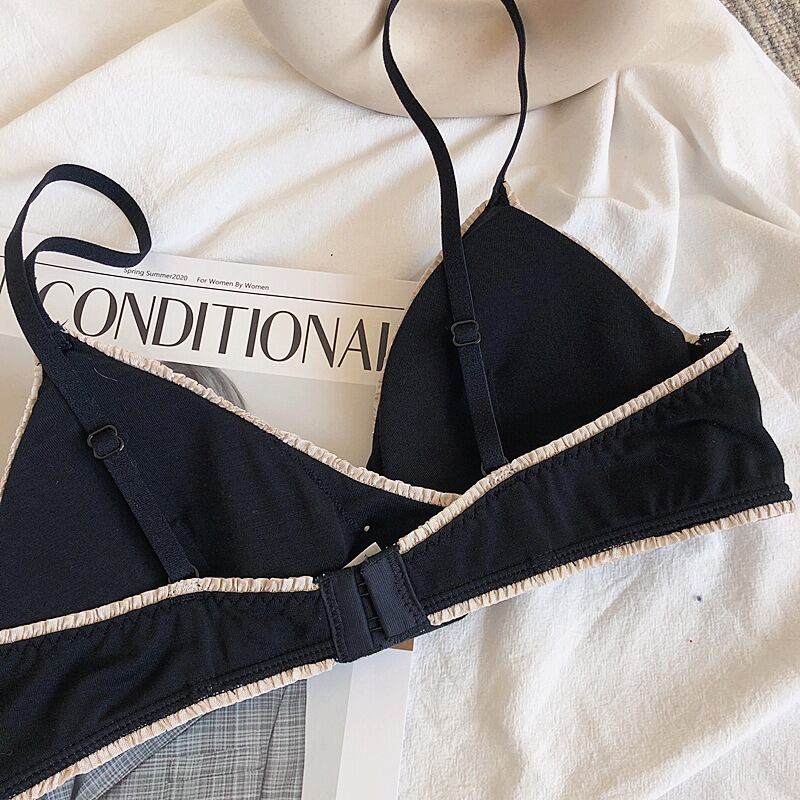 ★送料無料★ 2カラー ブラック 黒 レディース リボン シンプル ランジェリー ブラショーツセット パンツ ブラジャー ショーツ 女性用 下着 パンティ ワイヤレス