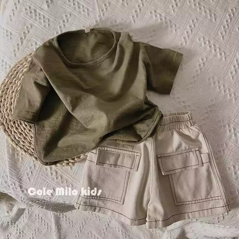 ★送料無料★ 3カラー ホワイト 白 男の子 女の子 くすみカラー Tシャツ カットソー キッズ ベビー 韓国 子供 春 夏 ナチュラル