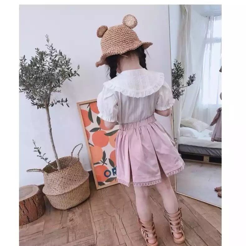 ★送料無料★ 女の子 半袖 フリル レース ブラウス 襟付き レース襟 シャツ ナチュラル キッズ ベビー 韓国 子供 春 夏