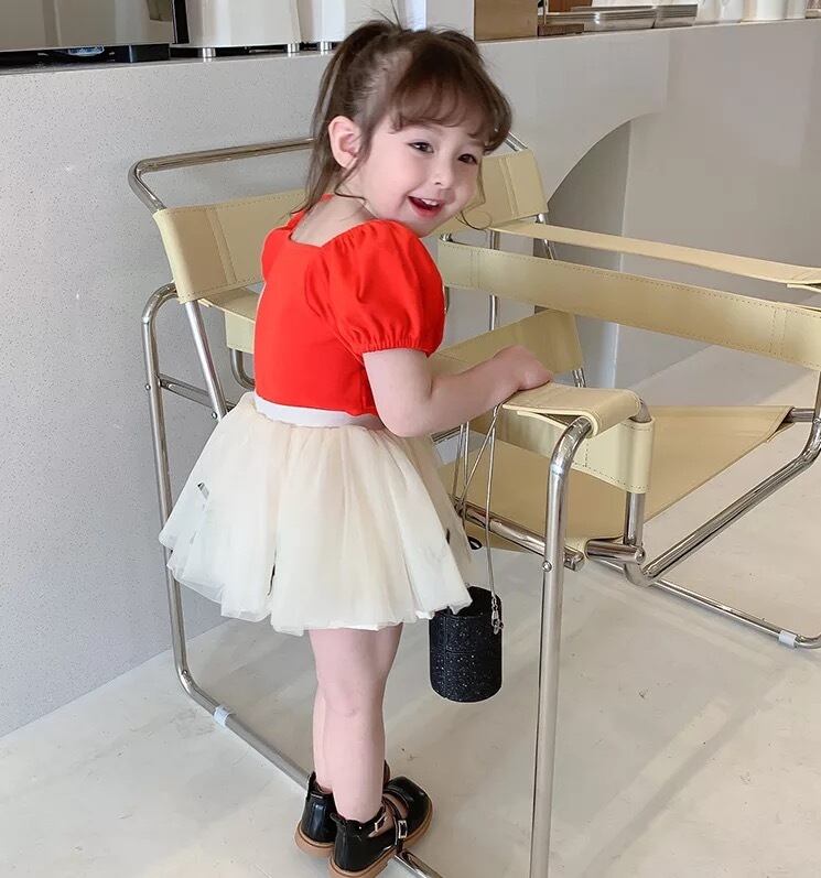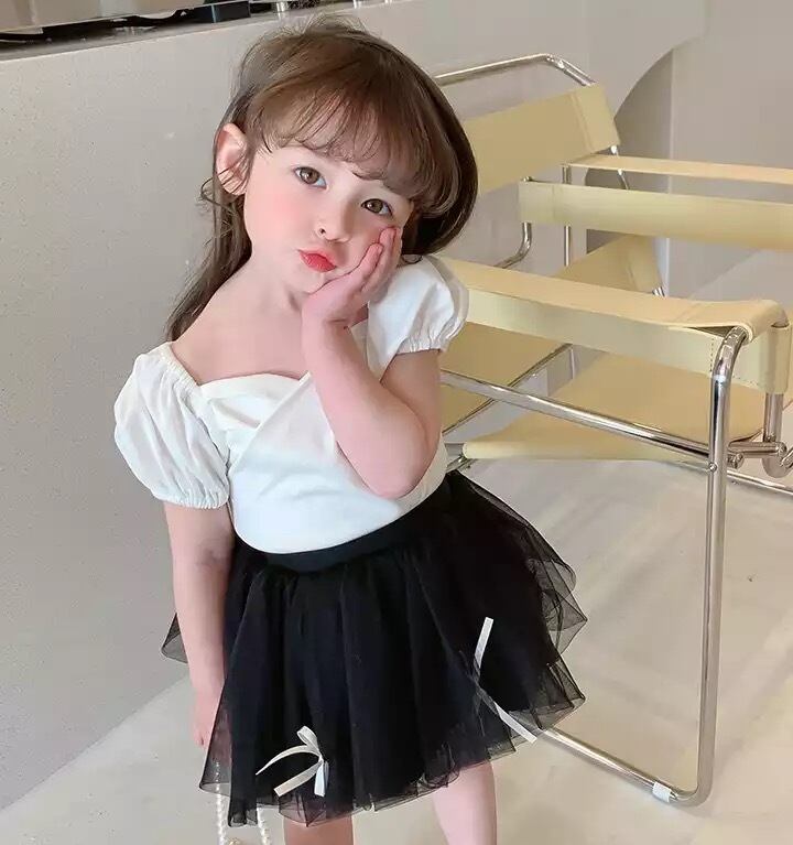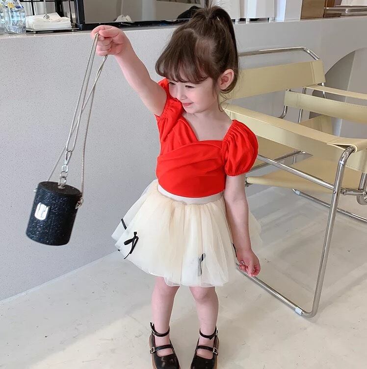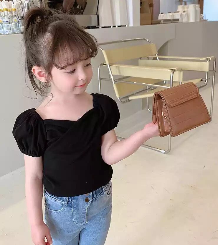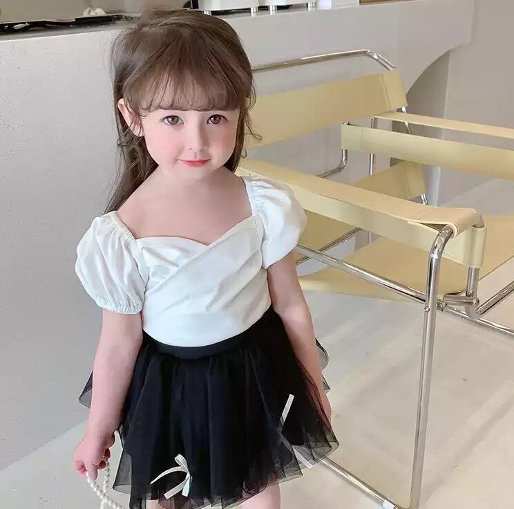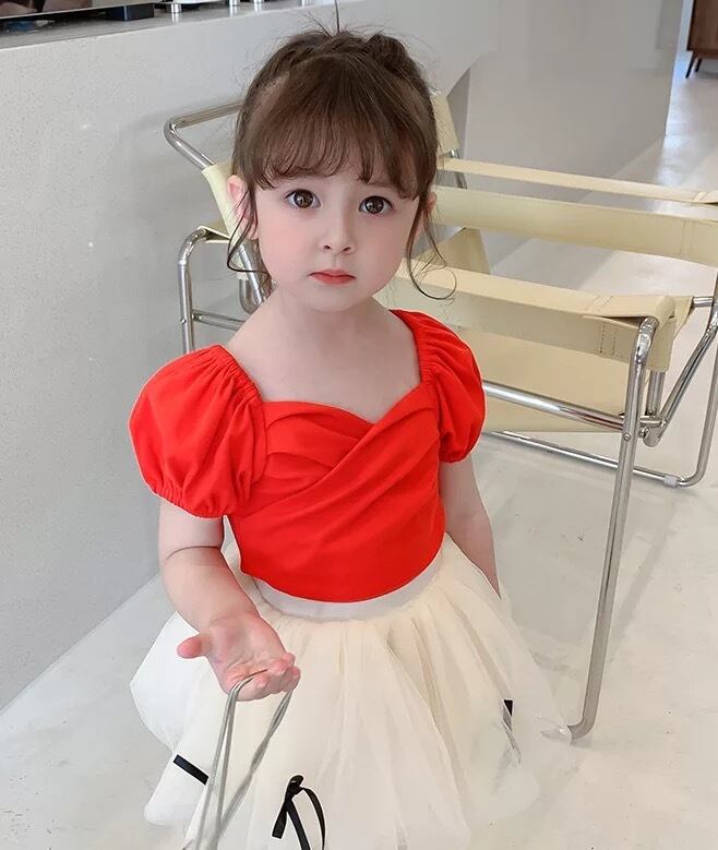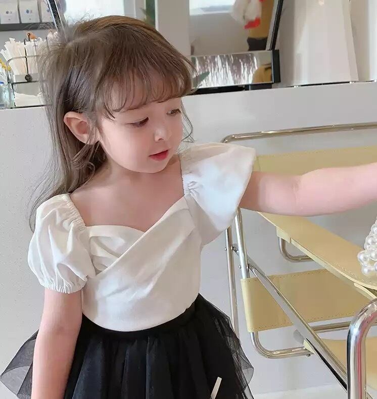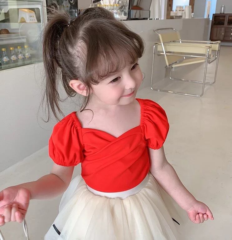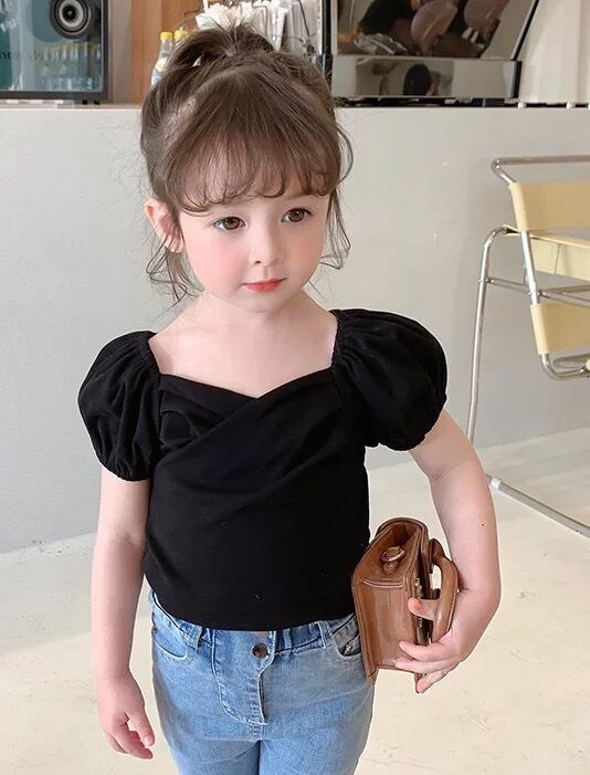 ★送料無料★ 3カラー 女の子 半袖 クロス パフスリーブ ブラウス ナチュラル キッズ ベビー 韓国 子供 春 夏