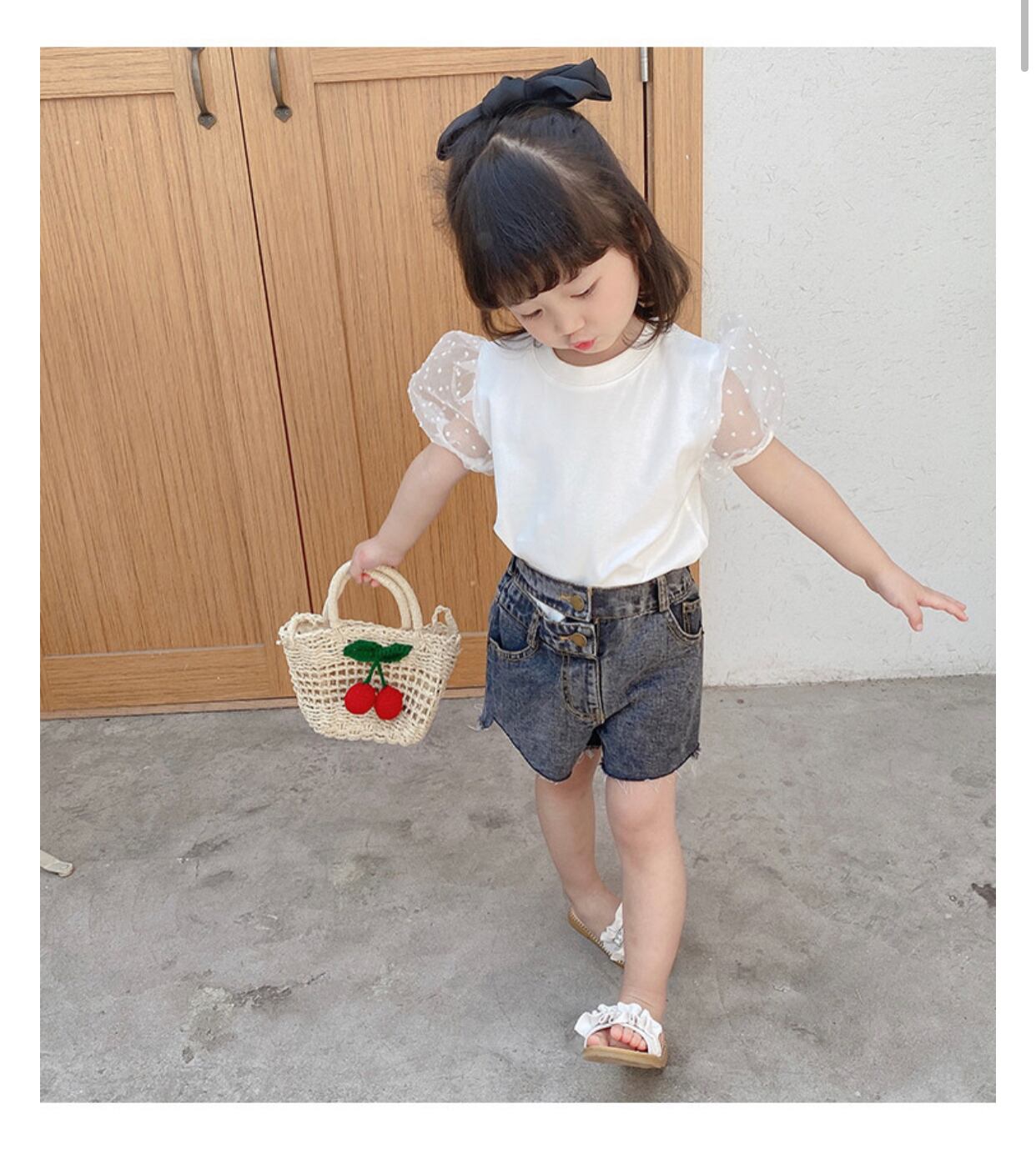 ★送料無料★ 2カラー 女の子 半袖 シアー 透け感 パフスリーブ ブラウス ナチュラル キッズ ベビー 韓国 子供 春 夏 ドット 水玉 シアースリーブ シースルー