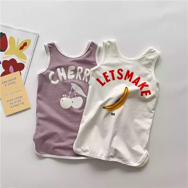 ★送料無料★ 2種類 バナナ 男の子 女の子 タンクトップ ノースリーブ Tシャツ カットソー キッズ ベビー 韓国 子供 春 夏 Uネック くすみカラー