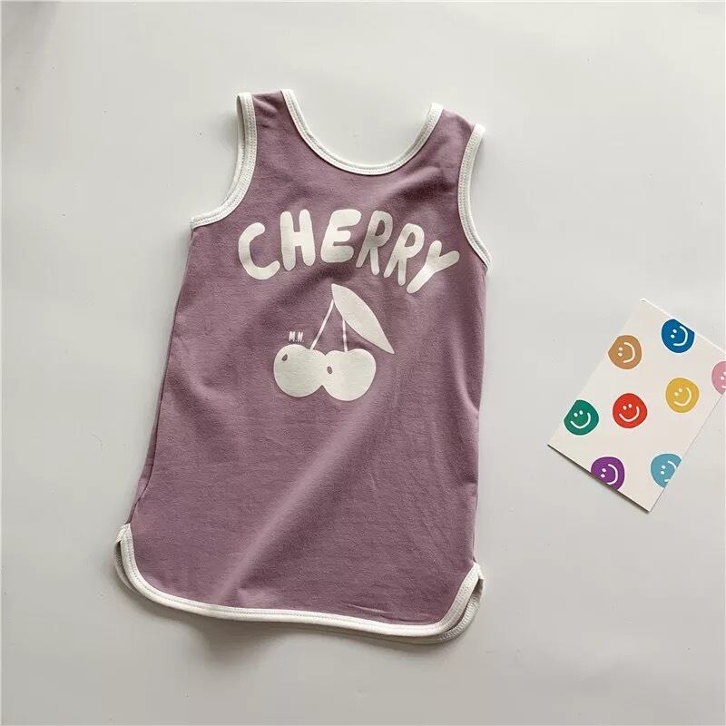 ★送料無料★ 2種類 チェリー さくらんぼ 男の子 女の子 タンクトップ ノースリーブ Tシャツ カットソー キッズ ベビー 韓国 子供 春 夏 Uネック くすみカラー