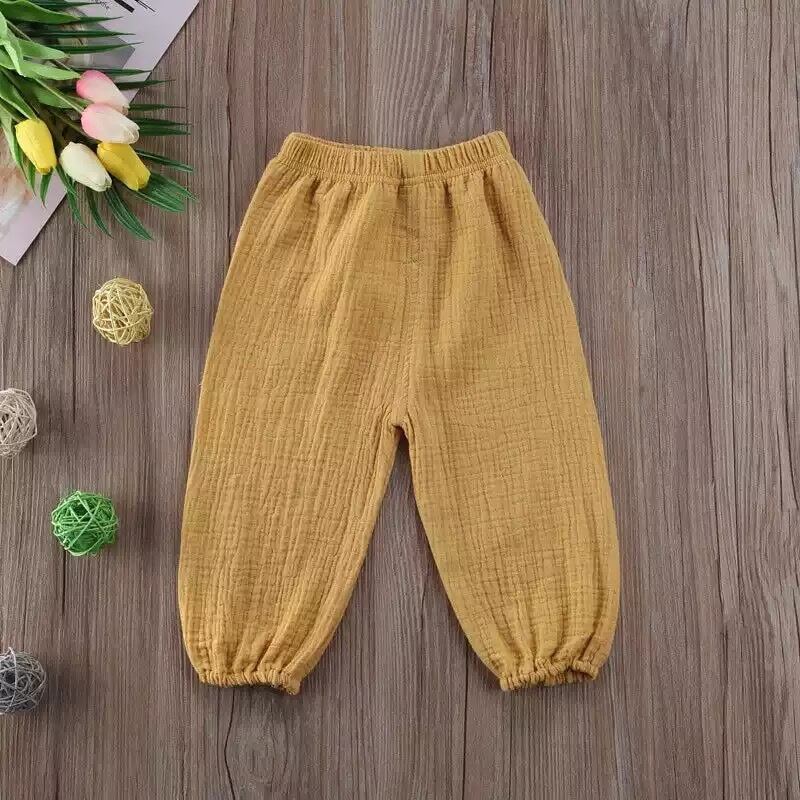 ★送料無料★ 男の子 女の子 ガーゼ素材 コットン リラックスパンツ キッズ ベビー 子供 ズボン ウエスト伸縮 ジョガー 裾ゴム ナチュラル 韓国 アースカラー