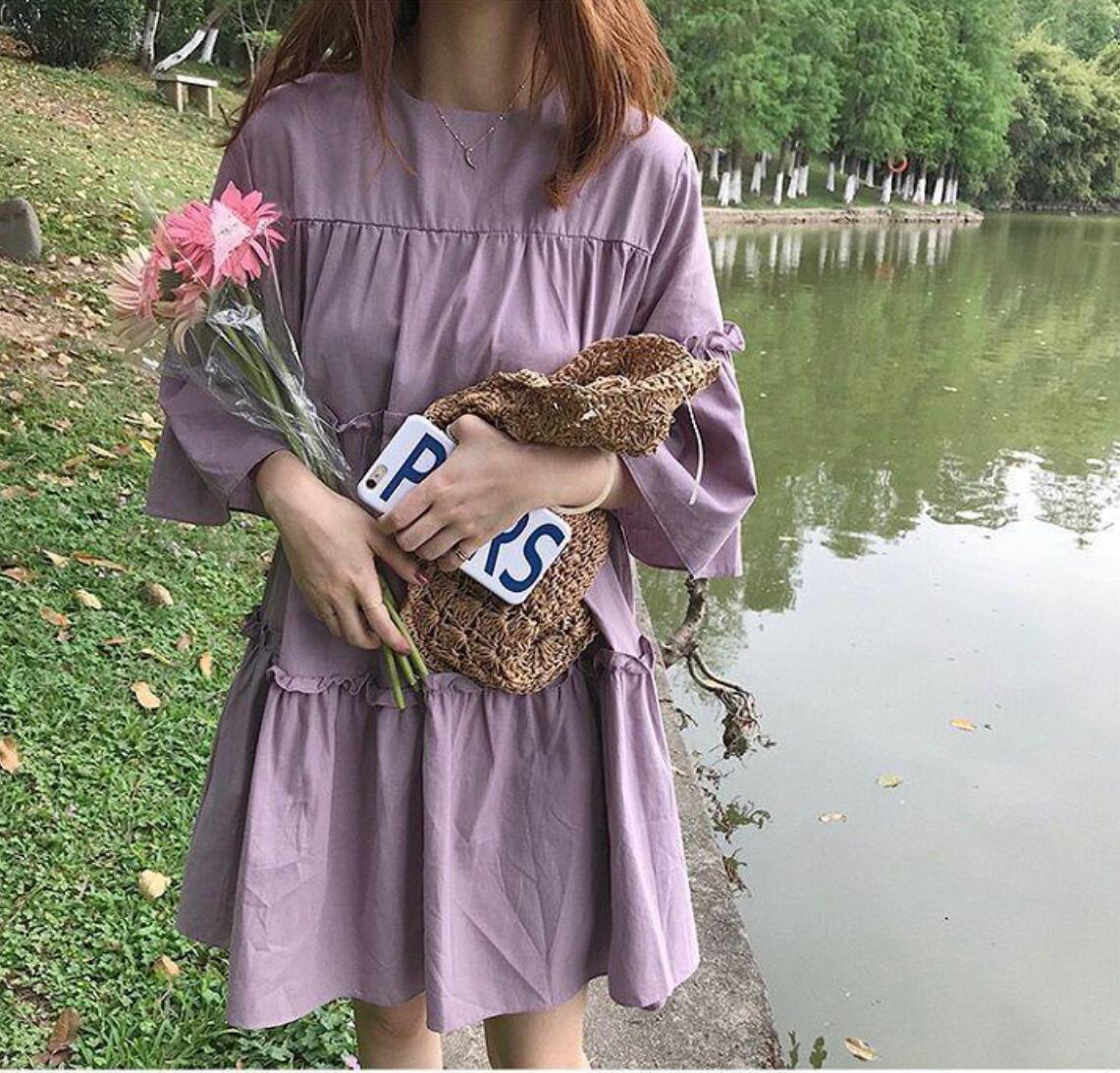★送料無料★ 3カラー ナチュラルホワイト レディース 半袖 5分袖 フレアスリーブ ワンピース ナチュラル 春 夏 韓国 ミニ 膝上丈
