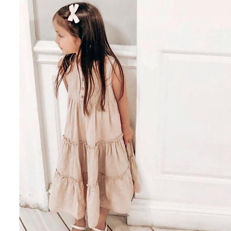 ★送料無料★ 2カラー ベージュ 女の子 ノースリーブ ティアード ナチュラル ワンピース 子供 キッズ 赤ちゃん ベビー 春 夏 ナチュラル 韓国 プチプラ