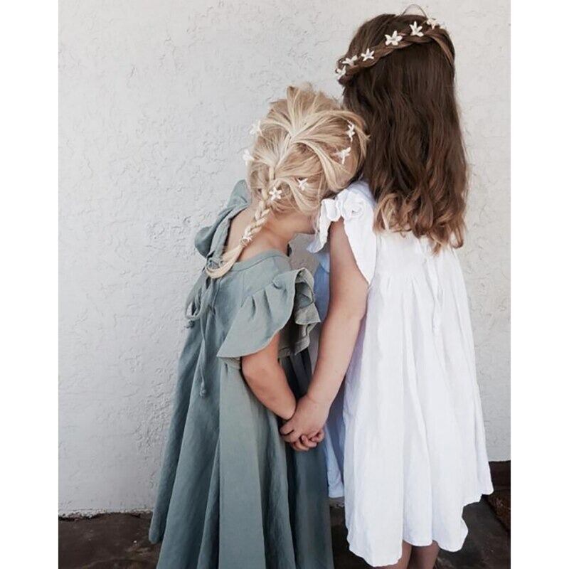 ★送料無料★ 2カラー グリーン 緑 女の子 半袖 フリル袖 ナチュラル ワンピース 子供 キッズ 赤ちゃん ベビー 春 夏 ナチュラル 韓国 プチプラ 背中開き バックオープン バッグオープン 背中リボン