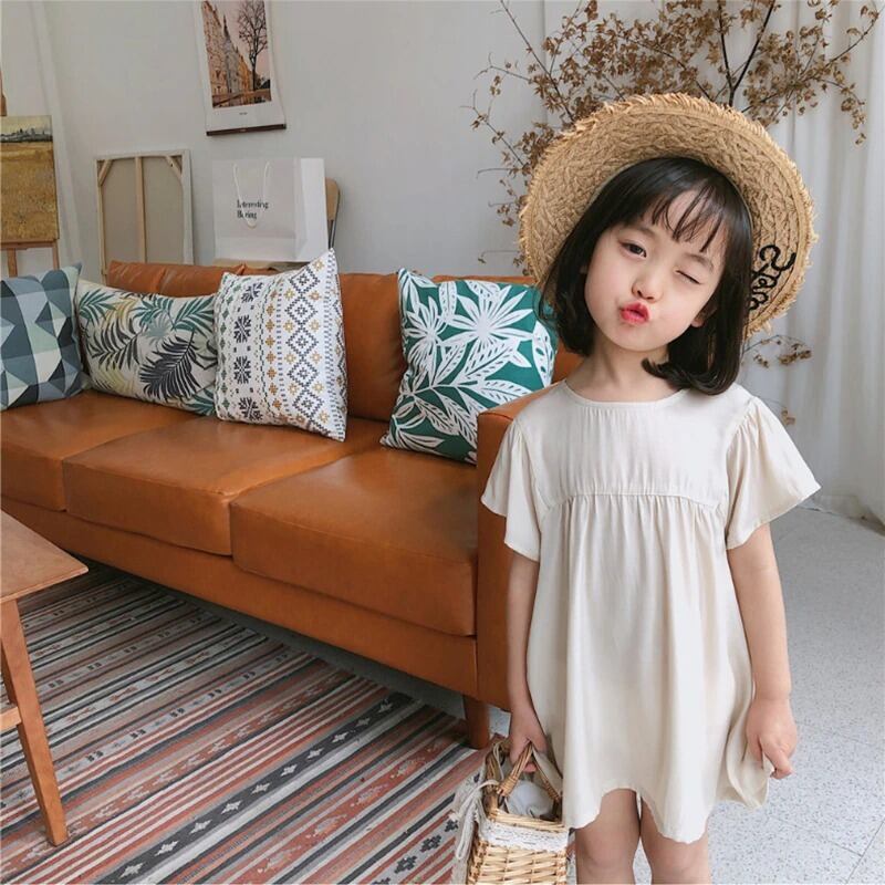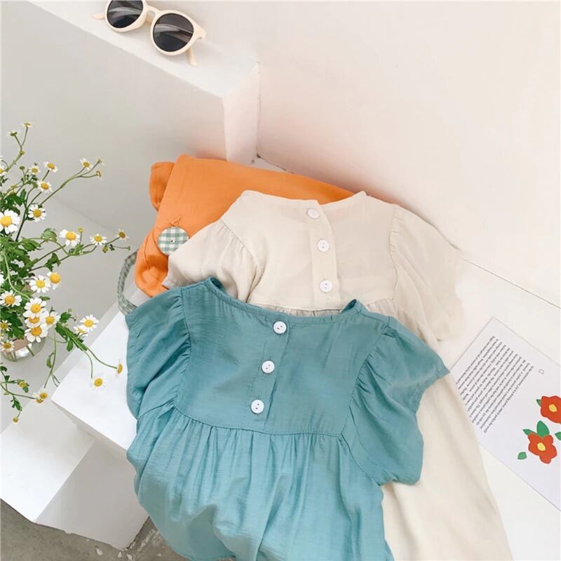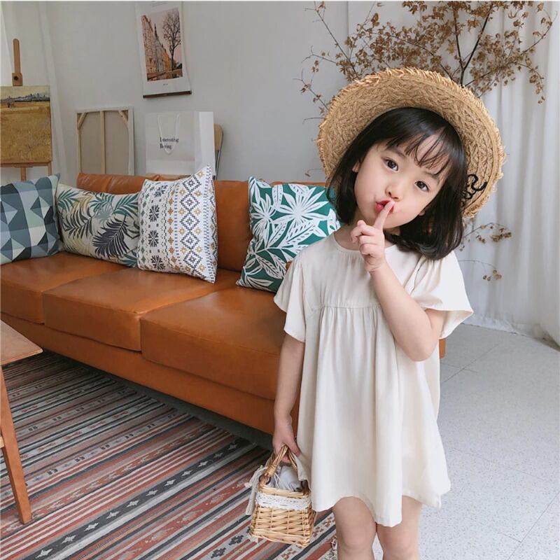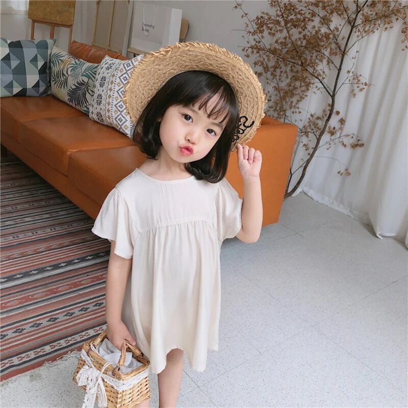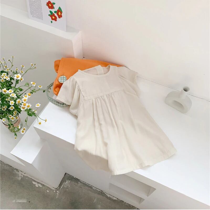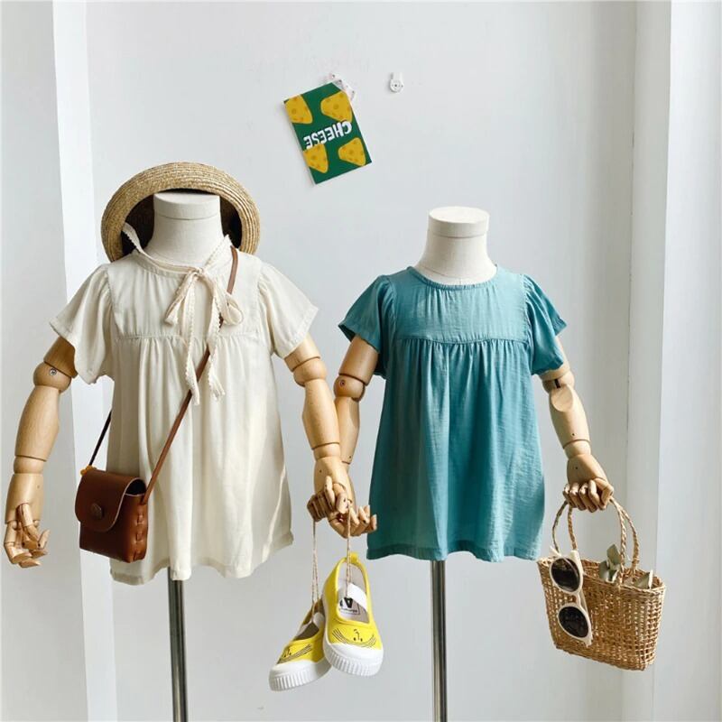 ★送料無料★ 2カラー ベージュ 女の子 半袖 ナチュラル ワンピース 子供 キッズ 赤ちゃん ベビー 春 夏 ナチュラル 韓国 プチプラ