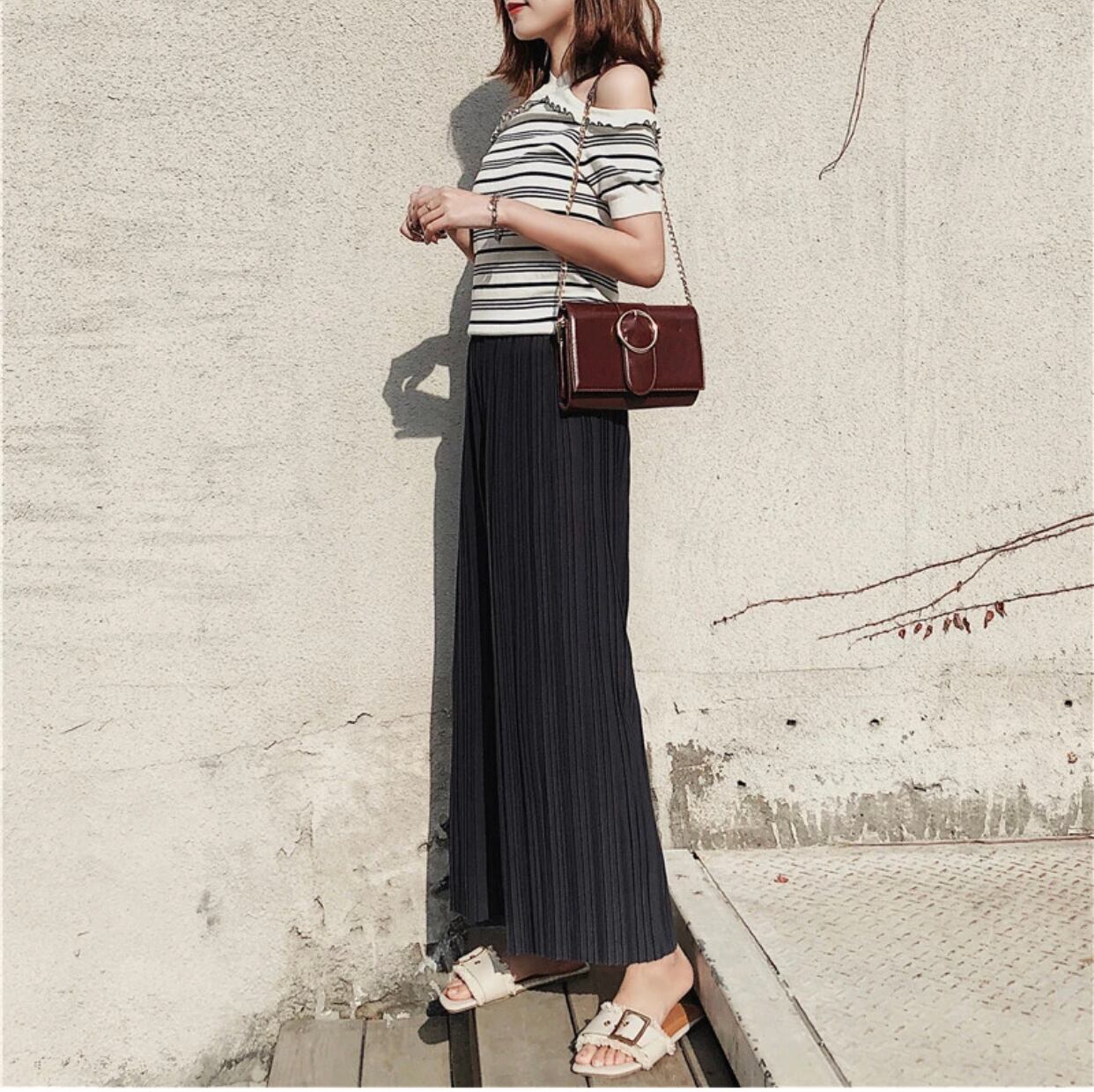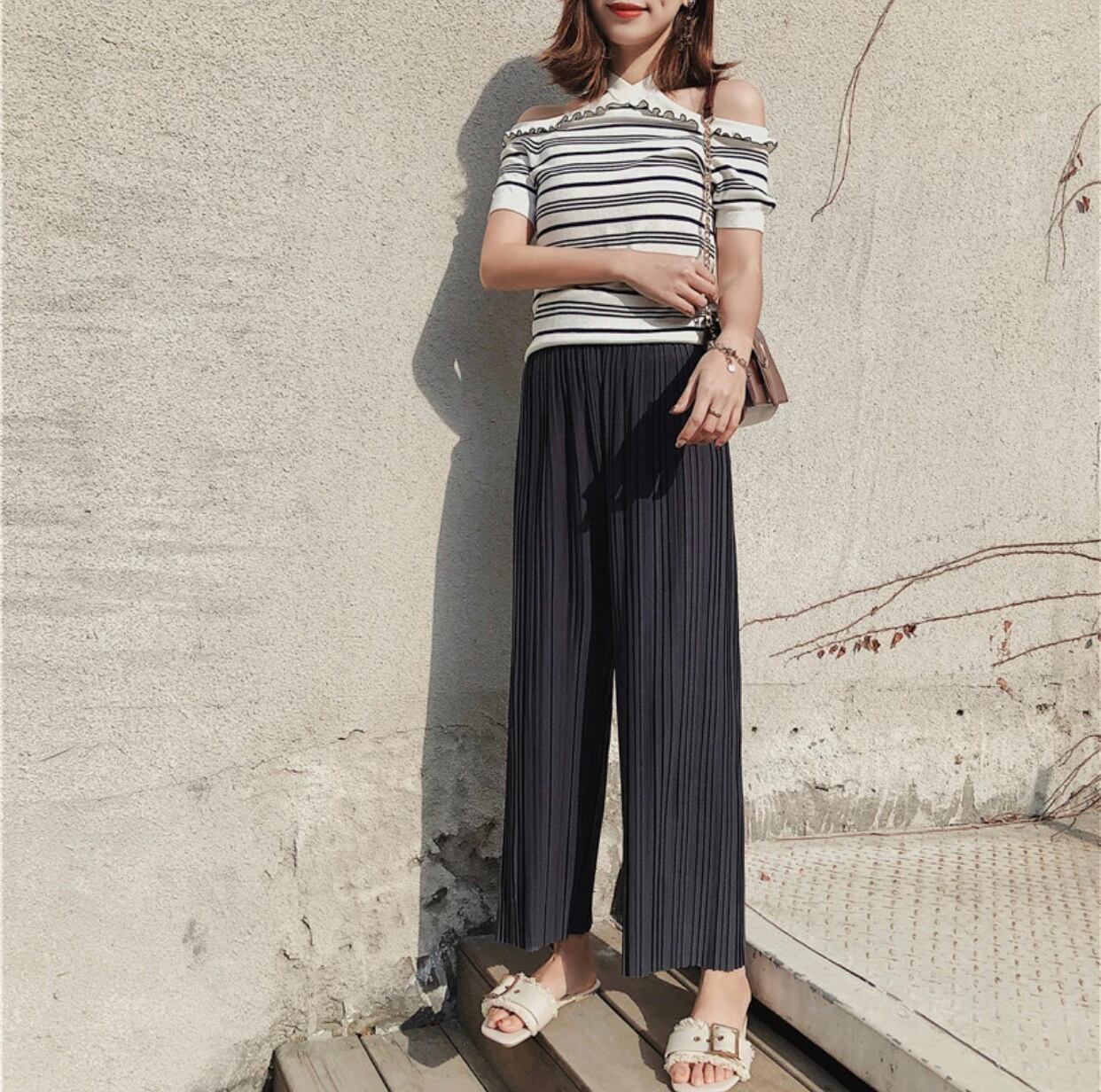 ★送料無料★ ダークグレー レディース シフォン パンツ ズボン ハイウエスト プリーツ アンクルパンツ レディース 女性 おしゃれ 春 夏 シルクタッチ 韓国 アンクル丈 ワイドパンツ
