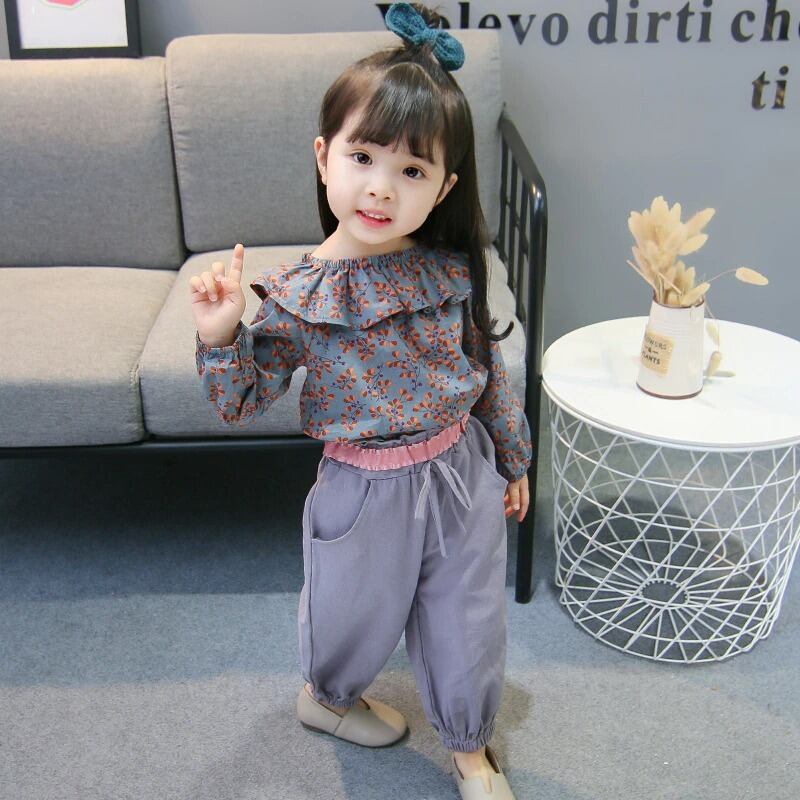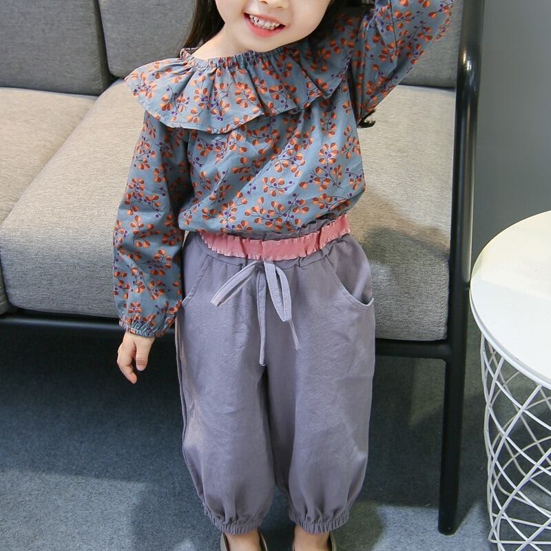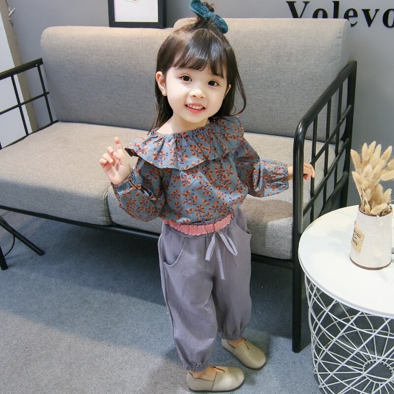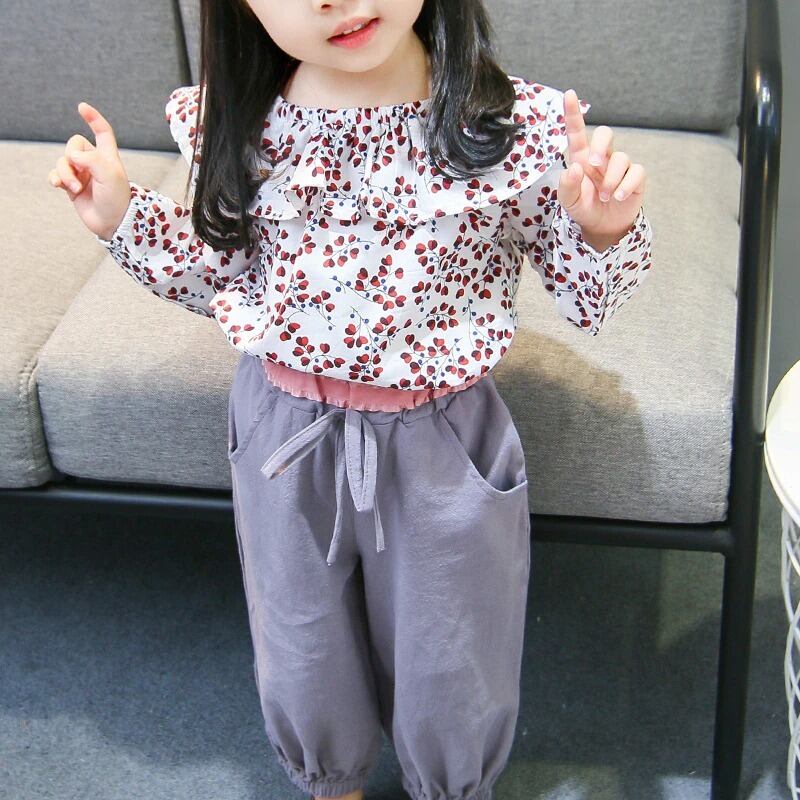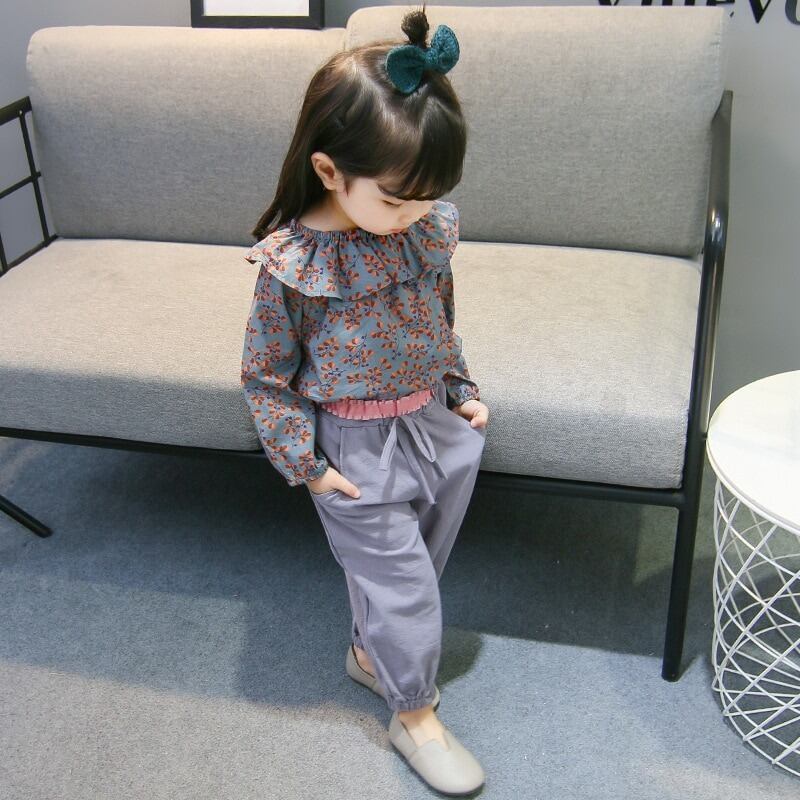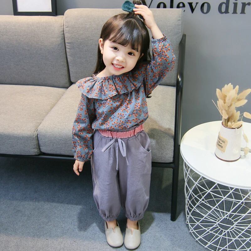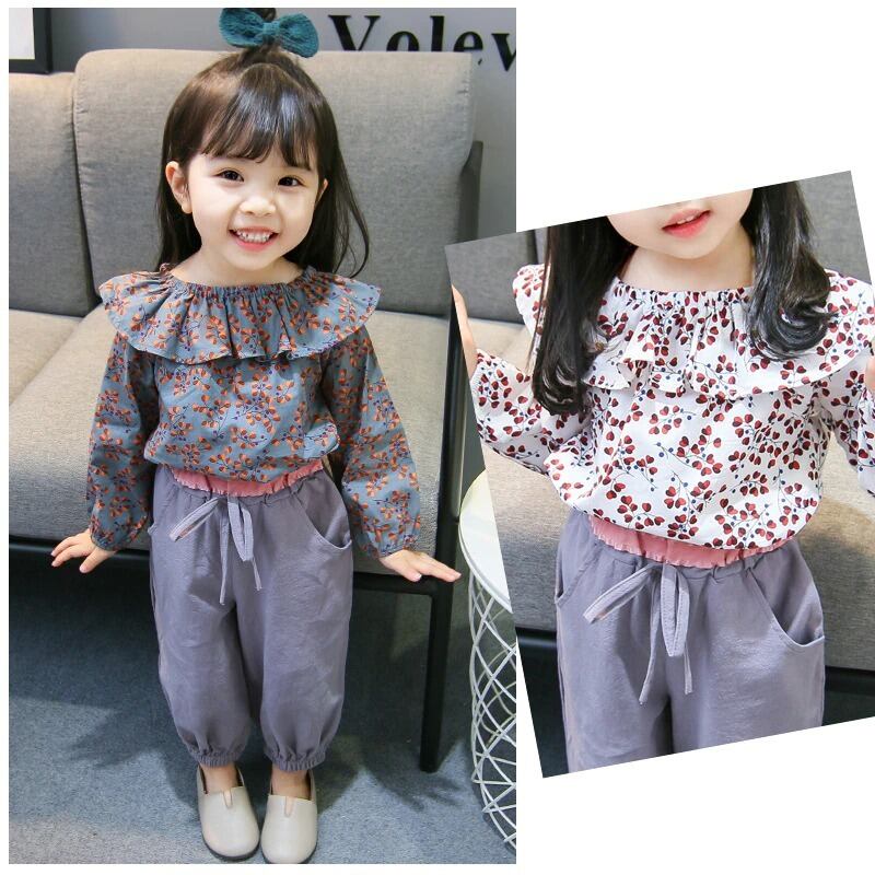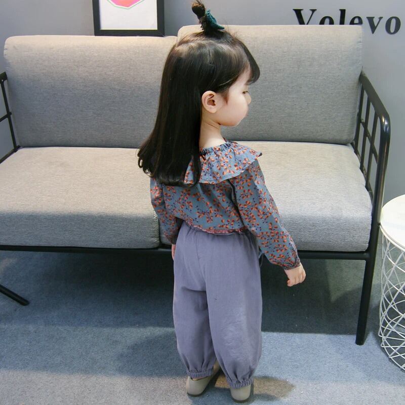 ★送料無料★ 2カラー ホワイト系 女の子 花柄 襟付き ビッグカラー ブラウス 長袖 シャツ ナチュラル キッズ ベビー 韓国 子供 ビックカラー 大きめ襟 秋 冬 フリル