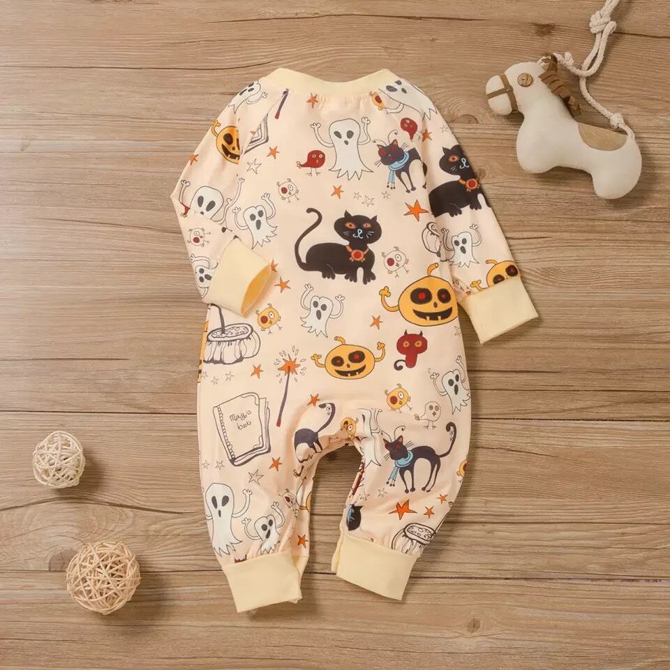 ★送料無料★ ベビー キッズ ハロウィン柄 女の子 男の子 ロンパース 子供 仮装 コスプレ かぼちゃ お化け 猫 ネコ ねこ おばけ
