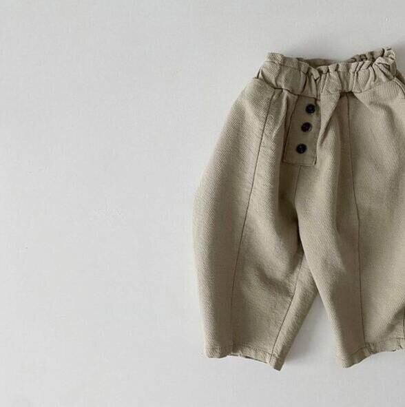 ★送料無料★2カラー 男の子 女の子 ボタン パンツ ズボン ボトムス 80cm〜130cm ナチュラル 秋 冬 韓国