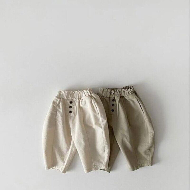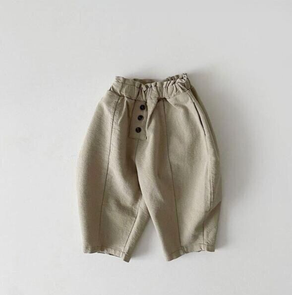 ★送料無料★2カラー 男の子 女の子 ボタン パンツ ズボン ボトムス 80cm〜130cm ナチュラル 秋 冬 韓国